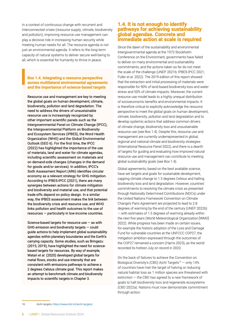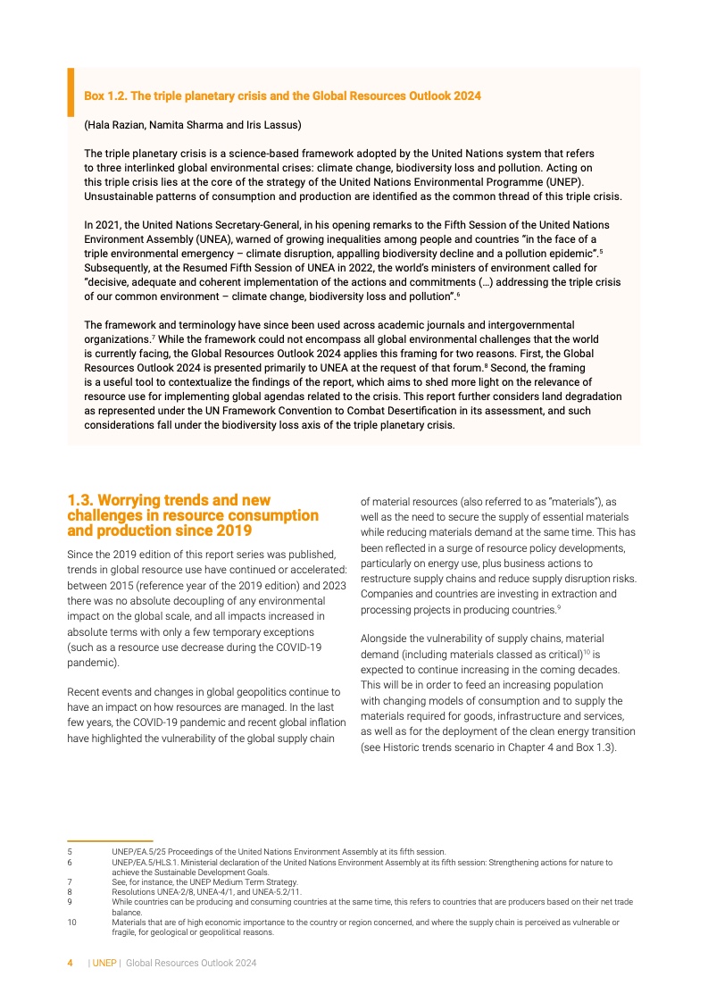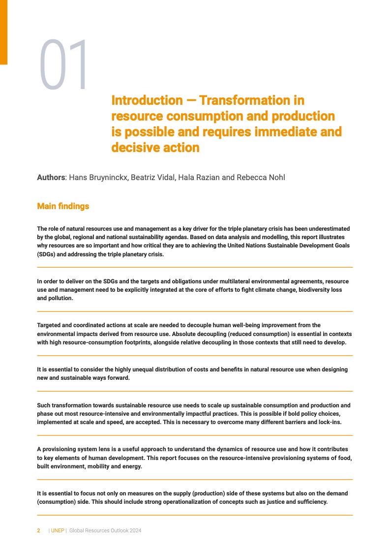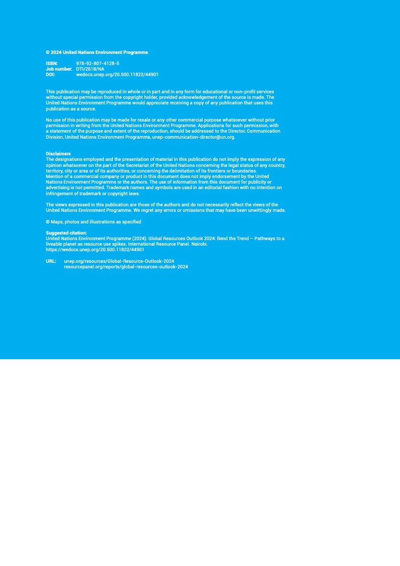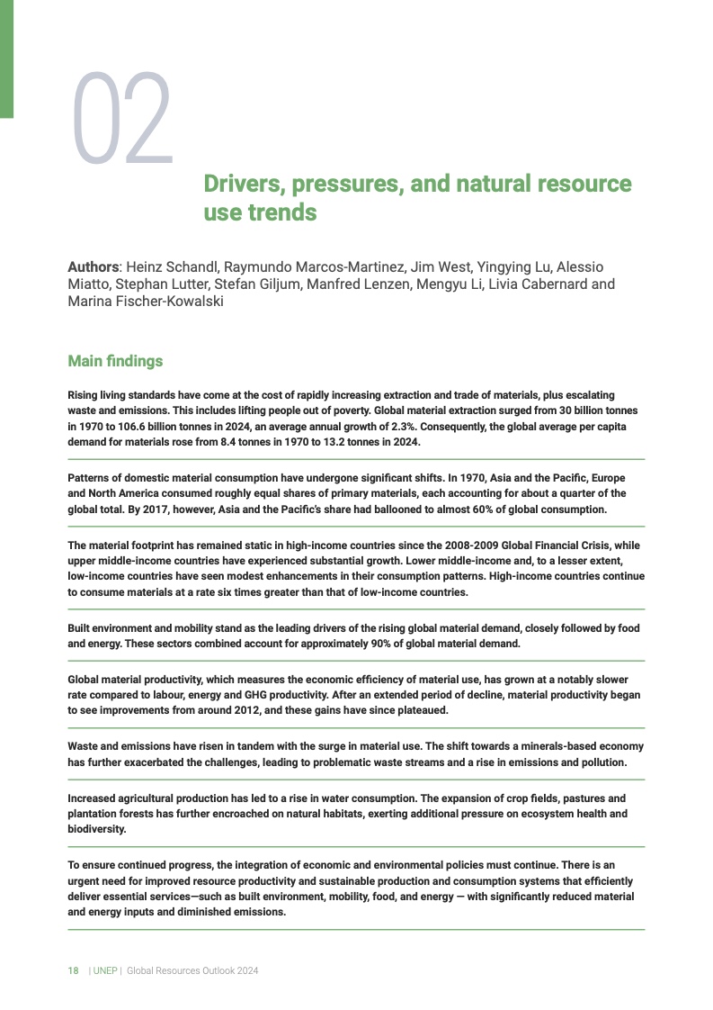 2024年版《全球资源展望》揭示了资源对于有效实施2030年议程和多边环境协定以应对三重地球危机。报告汇集了现有的最佳数据、建模和评估,以分析资源利用的迹象、影响和分配生态破坏。报告以国际资源委员会(由该领域的利益攸关方和区域专家组成的庞大网络)超过15年的工作目标,致力于争取多国的科学评估和意见。