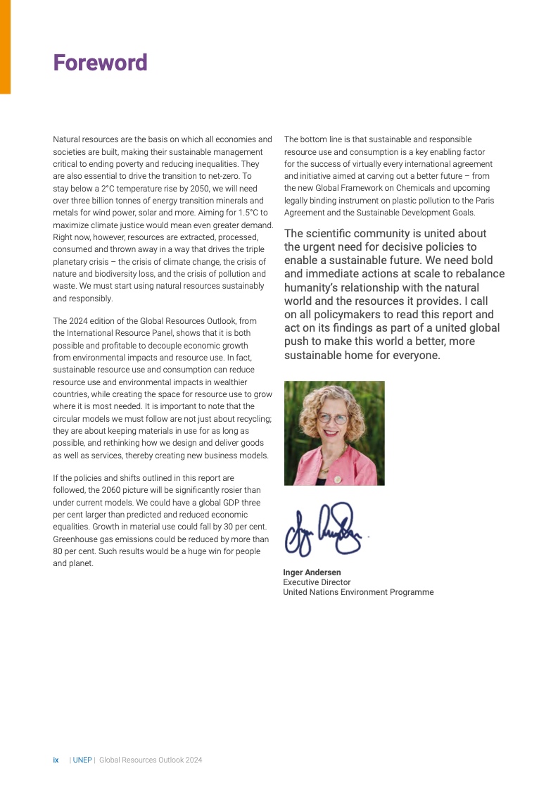报告说明自2019年版报告发布以来,全球资源利用上升趋势如何持续或加速。报告还显示,预计未来几十年人类的资源需求将继续增长。就此而言,若不紧急采取协同行动,到2060年,资源开采可能会比2020年水平增加60%,造成严重的减缓和风险。