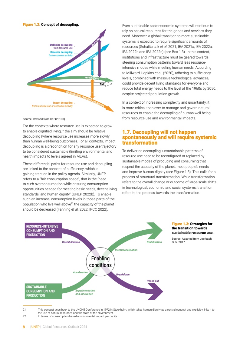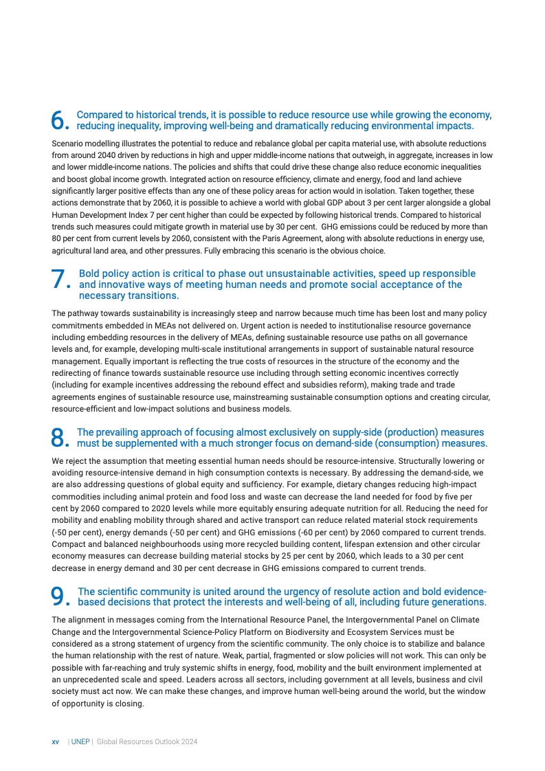 为此,采取大胆的政策行动至关重要,以逐步淘汰不可持续的创新方式满足人类的需求,并在必要的过渡中创造有利于社会接受和公平的条件。其中包括采取紧急行动,将资源问题纳入多边环境协定的实施范围,确定可持续的资源利用途径,并推出适当的金融、贸易和经济激励措施。通往可持续性的道路越发陡峭和狭窄,机会之窗正在关闭。科学事实表明:关键问题不在于是否有必要向可持续的全球资源消费和转型,而在于目前如何实现这一转型。任何合理可信的过渡道路都必须基于储蓄公正概念应对这一转型。