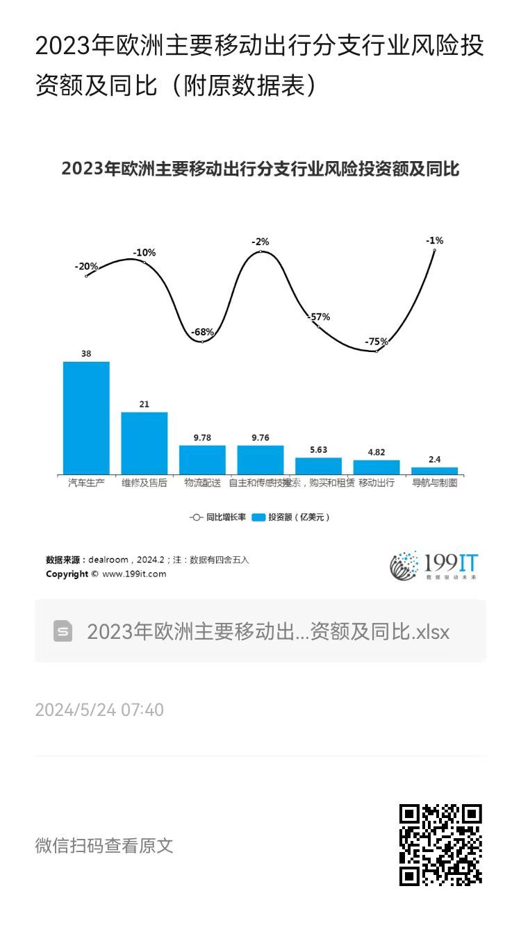 2023年欧洲主要移动出行分支行业风险投资额及同比(附原数据表) ​​​