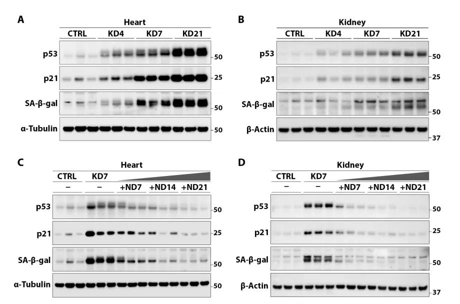 研究团队也以此测试了实行7天KD后,机体老化相关的生物标记物水平是否能快速恢复。结果显示,一周后回到正常饮食,P53、P21和SA-β-GAL这些老化标志物减少了,这意味着IKD可能是个更好的替代方案,能作为临床实践考虑。
