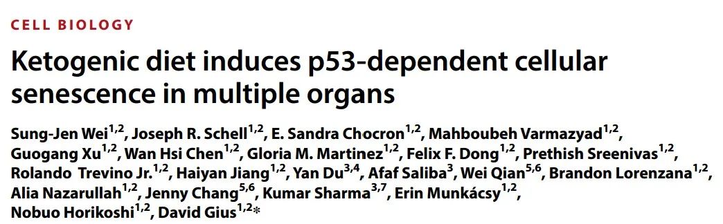 Sung-Jen Wei et al. Ketogenic diet induces p53-dependent cellular senescence in multiple organs. Sci Adv. 2024 May 17;10(20):eado1463. doi: 10.1126/sciadv.ado1463.