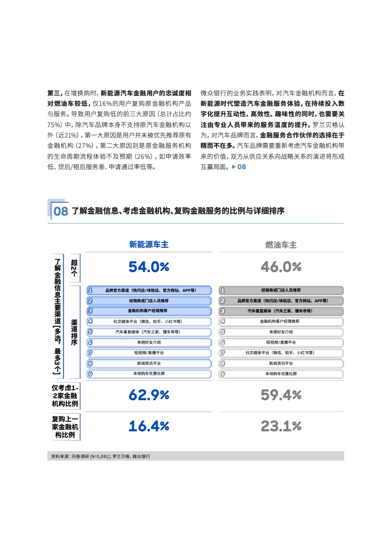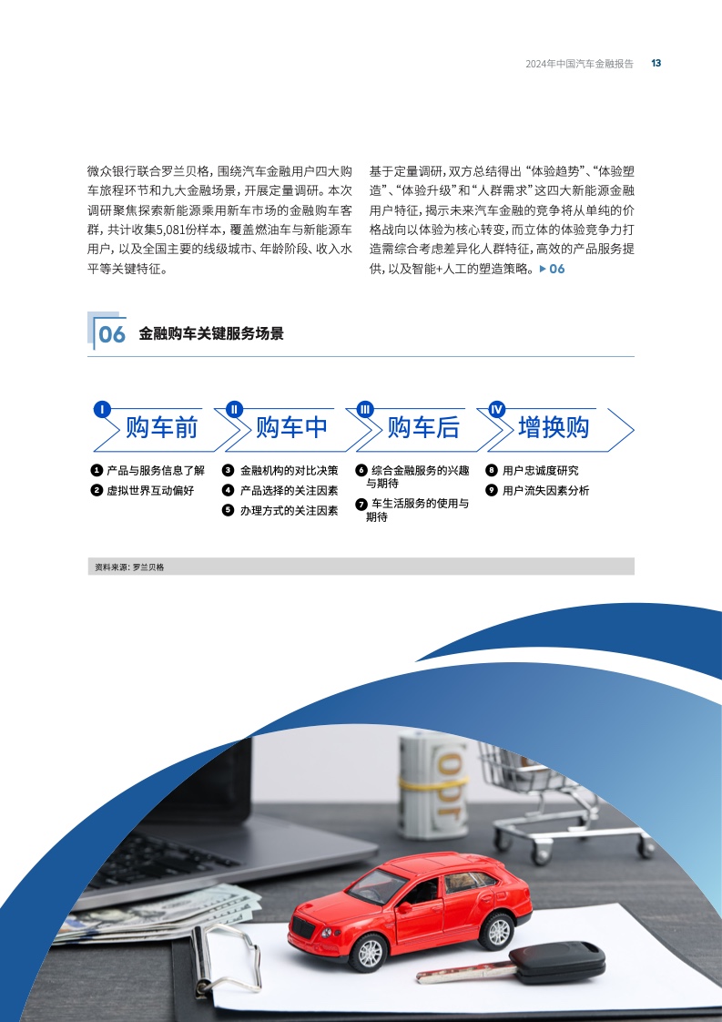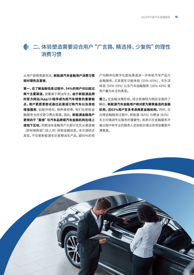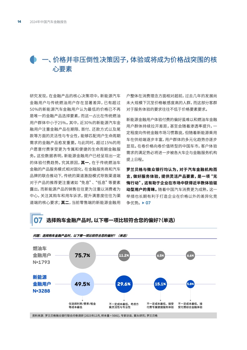 在新能源汽车行业迅猛发展的当下,汽车金融服务正经历一场深刻的变革。近日,我国首家数字银行微众银行与国际知名战略咨询公司罗兰贝格联合发布了《2024年中国汽车金融报告》,深入剖析我国新能源汽车金融市场的新趋势,以及金融用户需求的新动向,探讨用户体验作为新能源汽车金融市场新焦点的重要性。