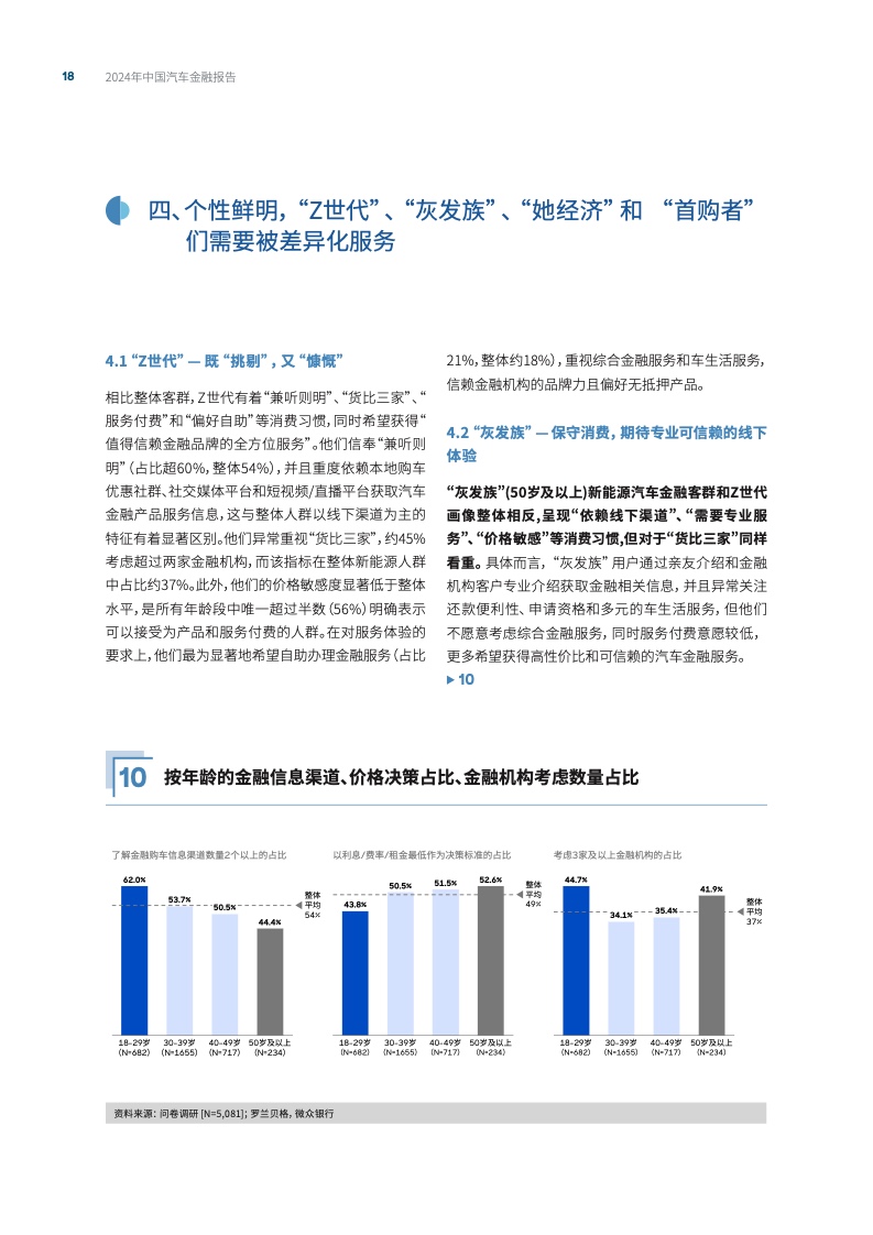 报告特别提到了“Z世代”、“灰发族”、“她经济”和“首购者”等不同用户群体的金融产品需求。“Z世代”用户或更倾向于通过社交媒体和线上平台获取信息,重视多渠道对比,并且愿意为服务付费;“灰发族”或更注重专业服务和高性价比;“她经济”用户群体或更关注服务的温度;“首购者”则可能追求更为简单清晰的产品和自助便利的服务。