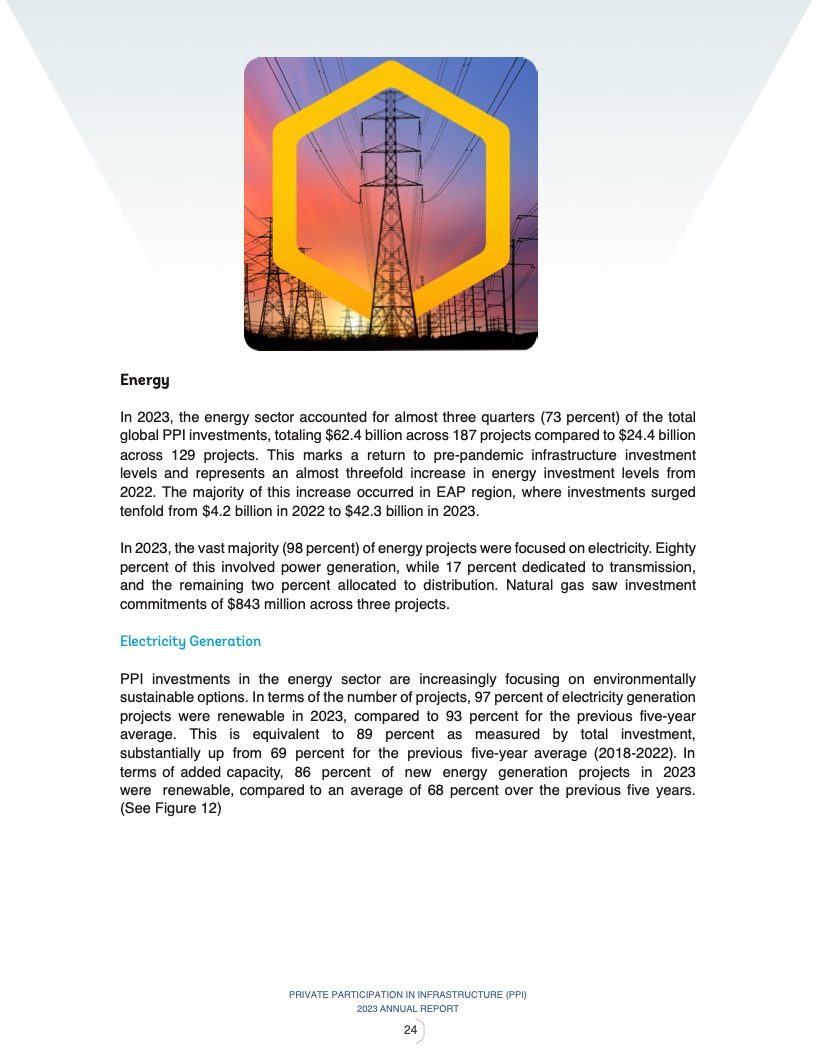 《私人资本参加基础设施投资》报告(PPI报告)可以追溯到1984年,持续跟踪中低收入国家1万多个基础设施项目的投资情况。随着时间的推移各国越来越重视基础设施融资,PPI数据集已成为跟踪进展和识别趋势的重要资源。