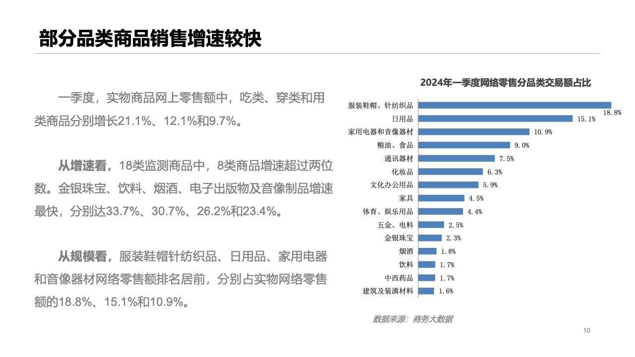 数字消费成为新增长点,商务部组织各地实施数字消费提升行动,智能穿戴装备和电子音像制品分别增长30.9%和23.4%。