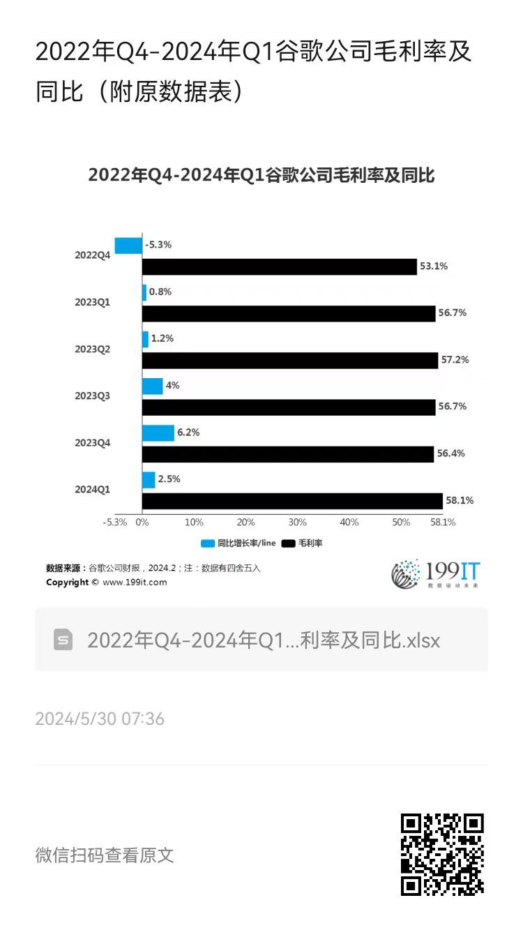 2022年Q4-2024年Q1谷歌公司毛利率及同比
