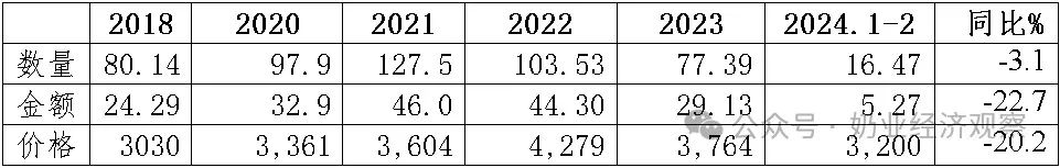 5.1.2 进口燕麦草:2024年1-2月3.5万吨,增181%