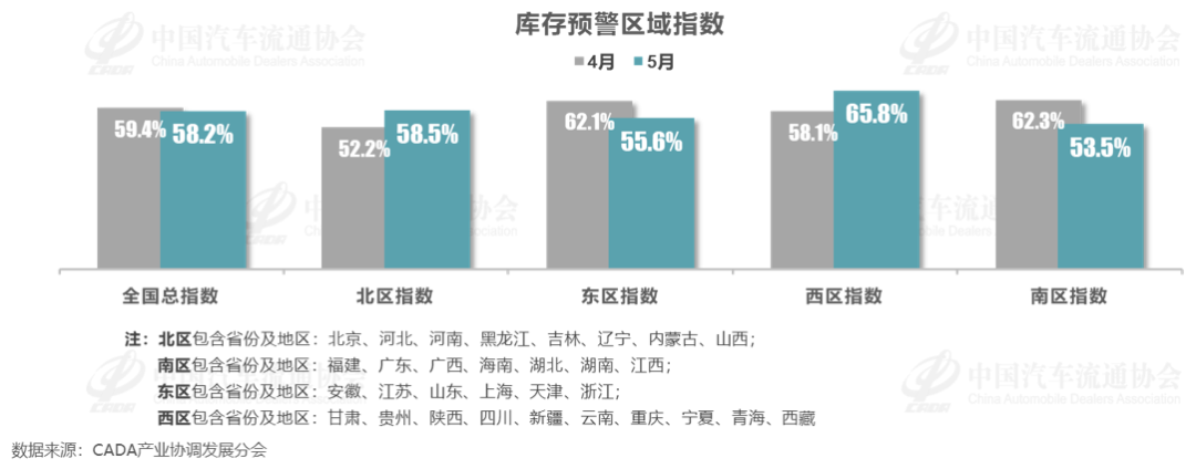 从区域指数情况看:5月全国总指数为58.2%,北区指数为58.5%,东区指数为55.6%,西区指数为65.8%,南区指数为53.5%。