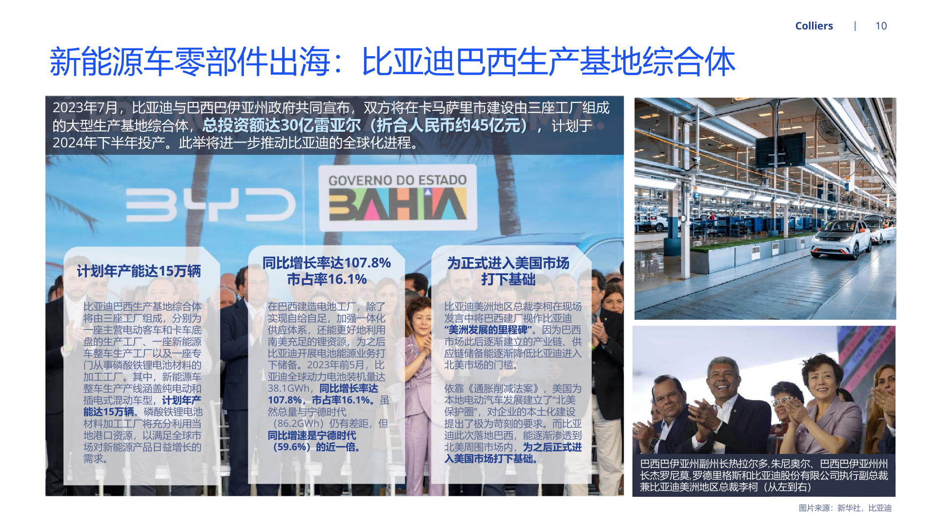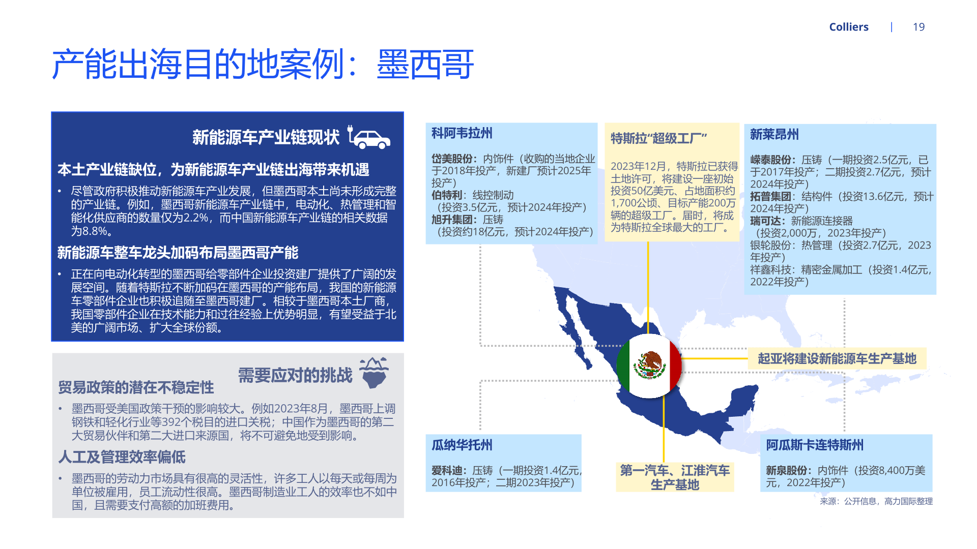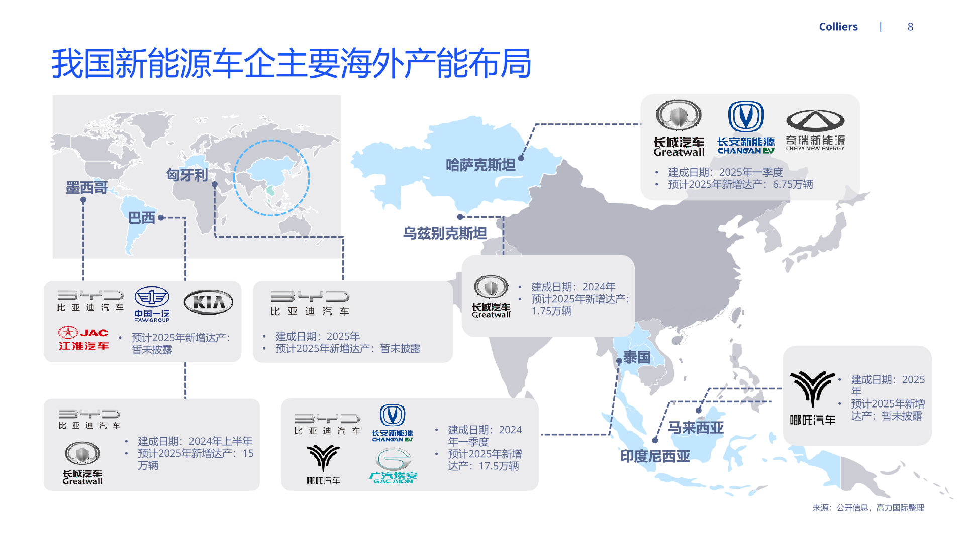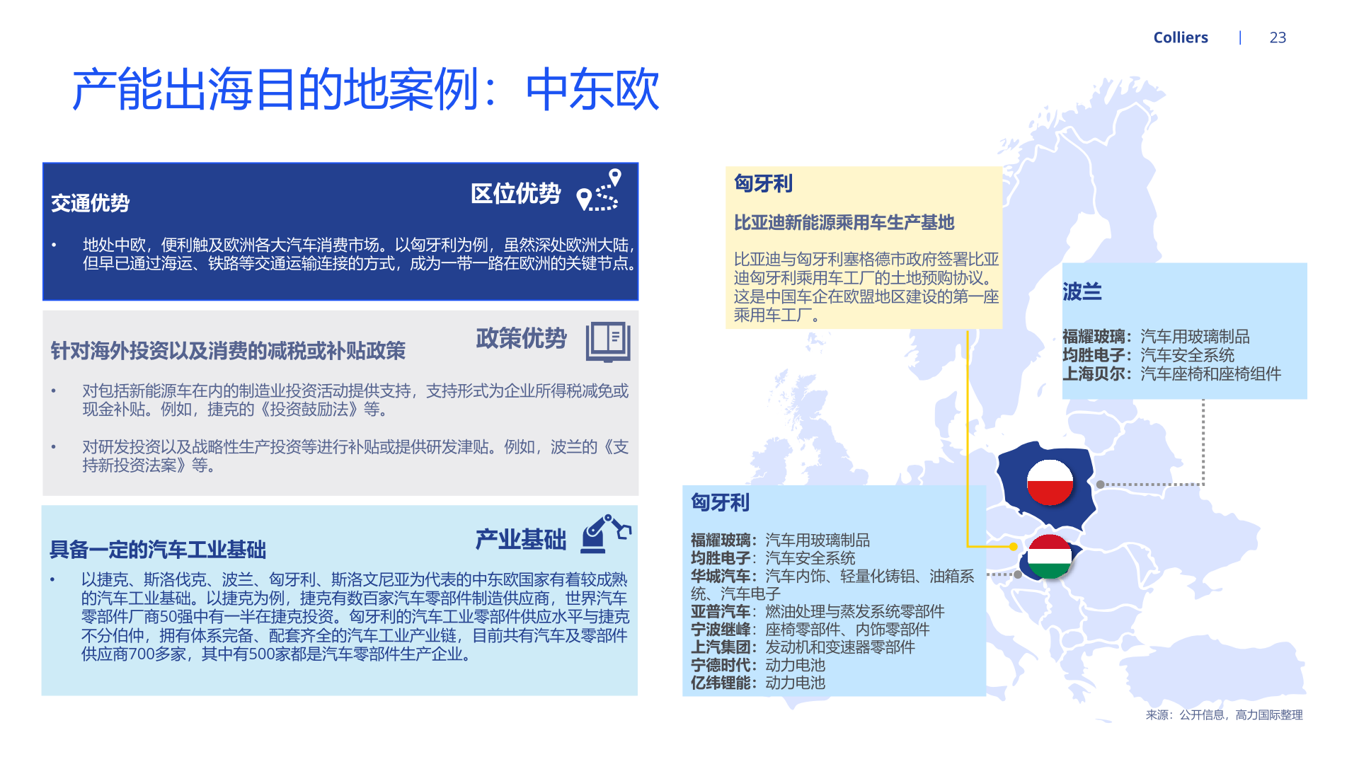 随着新能源汽车产能持续扩张,为适配北美、欧洲等地区的整车企业需求,国内部分汽车零部件企业开启全球布局、扩大产能。经营方面, 就近建厂有利于零部件供应商快速响应当地客户需求,且能够降低运费、关税等成本,稳固零部件企业在海外的市场地位。海外设厂的零 部件企业也能通过拓品类、拓车型、拓客户等路径实现业务快速增长。