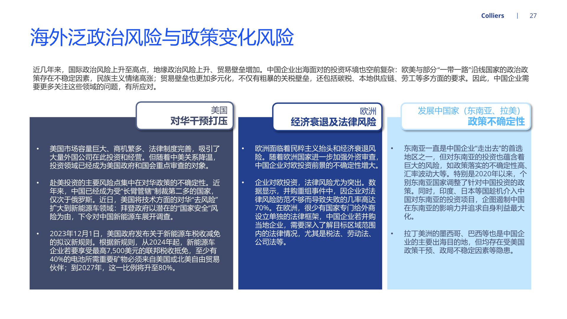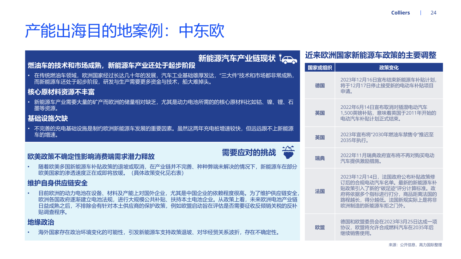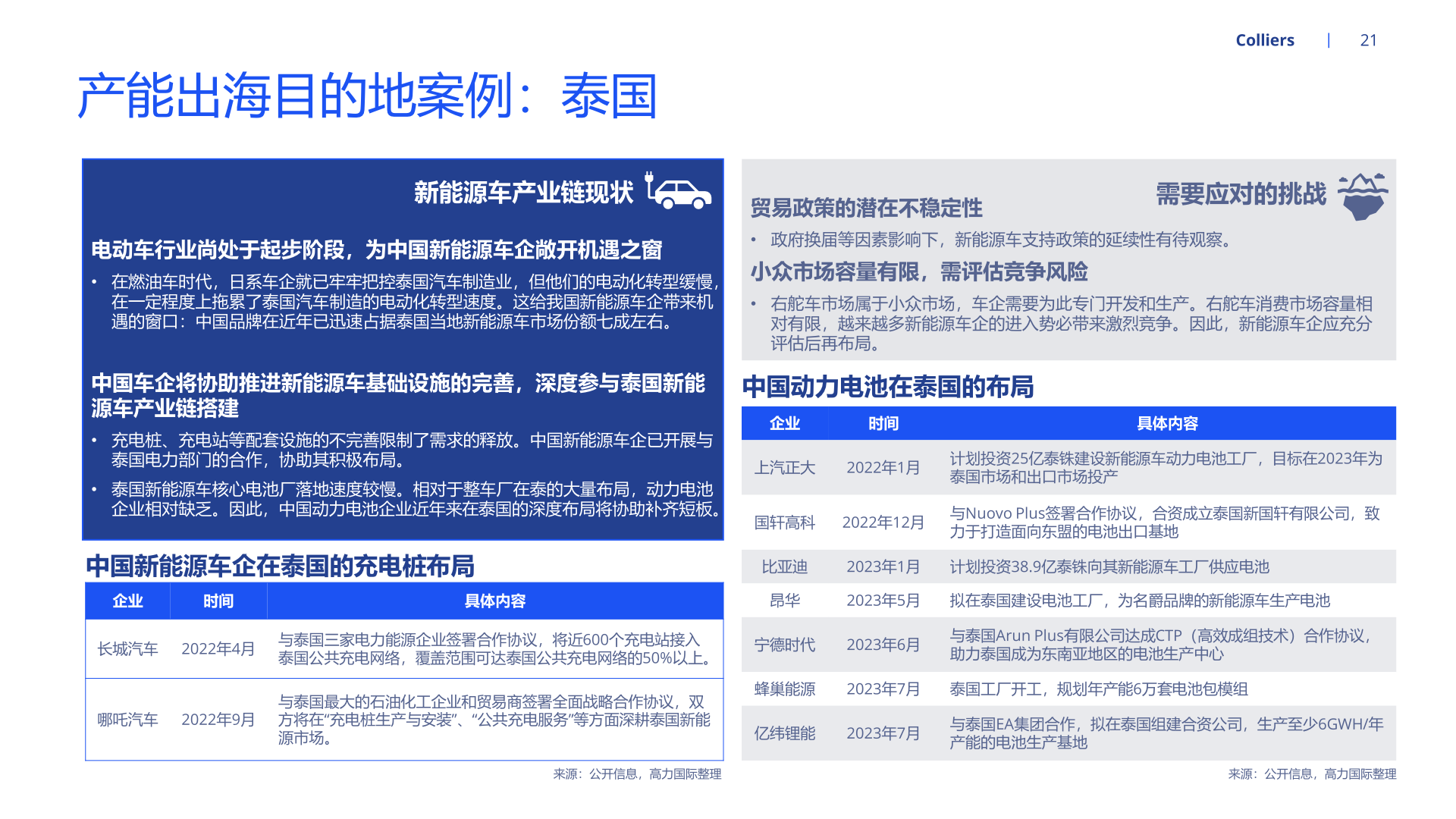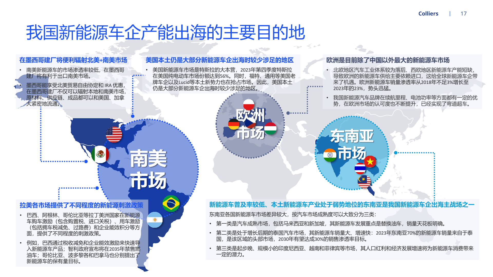 随着新能源汽车产能持续扩张,为适配北美、欧洲等地区的整车企业需求,国内部分汽车零部件企业开启全球布局、扩大产能。经营方面, 就近建厂有利于零部件供应商快速响应当地客户需求,且能够降低运费、关税等成本,稳固零部件企业在海外的市场地位。海外设厂的零 部件企业也能通过拓品类、拓车型、拓客户等路径实现业务快速增长。