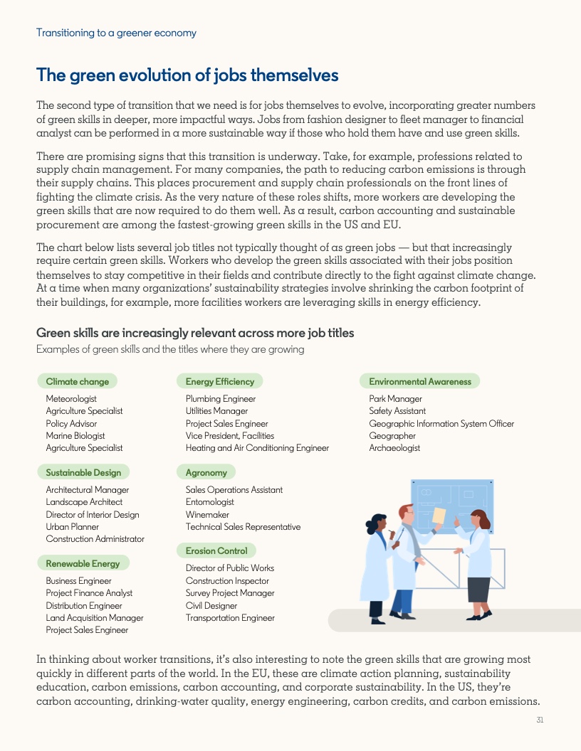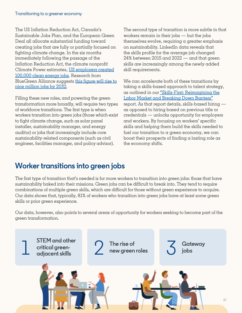为了在2030年前为10亿人提供更好的教育、技能和经济机会,世界经济论坛的“重塑技能革命”平台汇集了350多个组织。“重塑技能革命”一半以上的努力都是为了培养工人从事绿色工作。