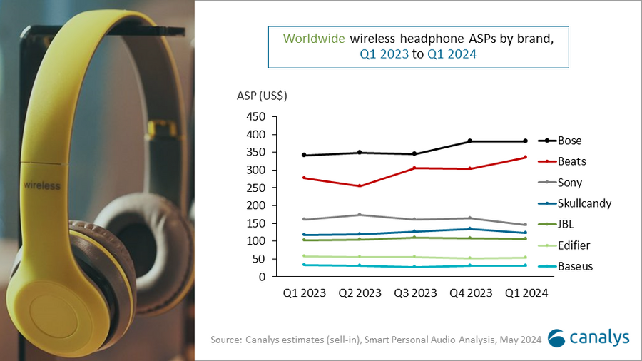 在饱和的TWS市场,无线耳机已经成为厂商寻求增长的焦点。索尼在旗舰产品和入门级产品上取得了显著增长,市场份额增长了17%。三星和苹果战略性地利用JBL(哈曼)和Beats品牌来提高曝光率,并吸引合作者来加强消费者联系,从而确保了它们的领先地位。新兴厂商正大胆进军全球市场,推出价格约为60美元的功能丰富的无线耳机,提供一系列在音质和双设备连接方面可与TWS媲美的选择。通过提供强大的功能和实惠的价格,他们吸引消费者探索无线耳机的独特外形和用户体验,增强竞争优势。