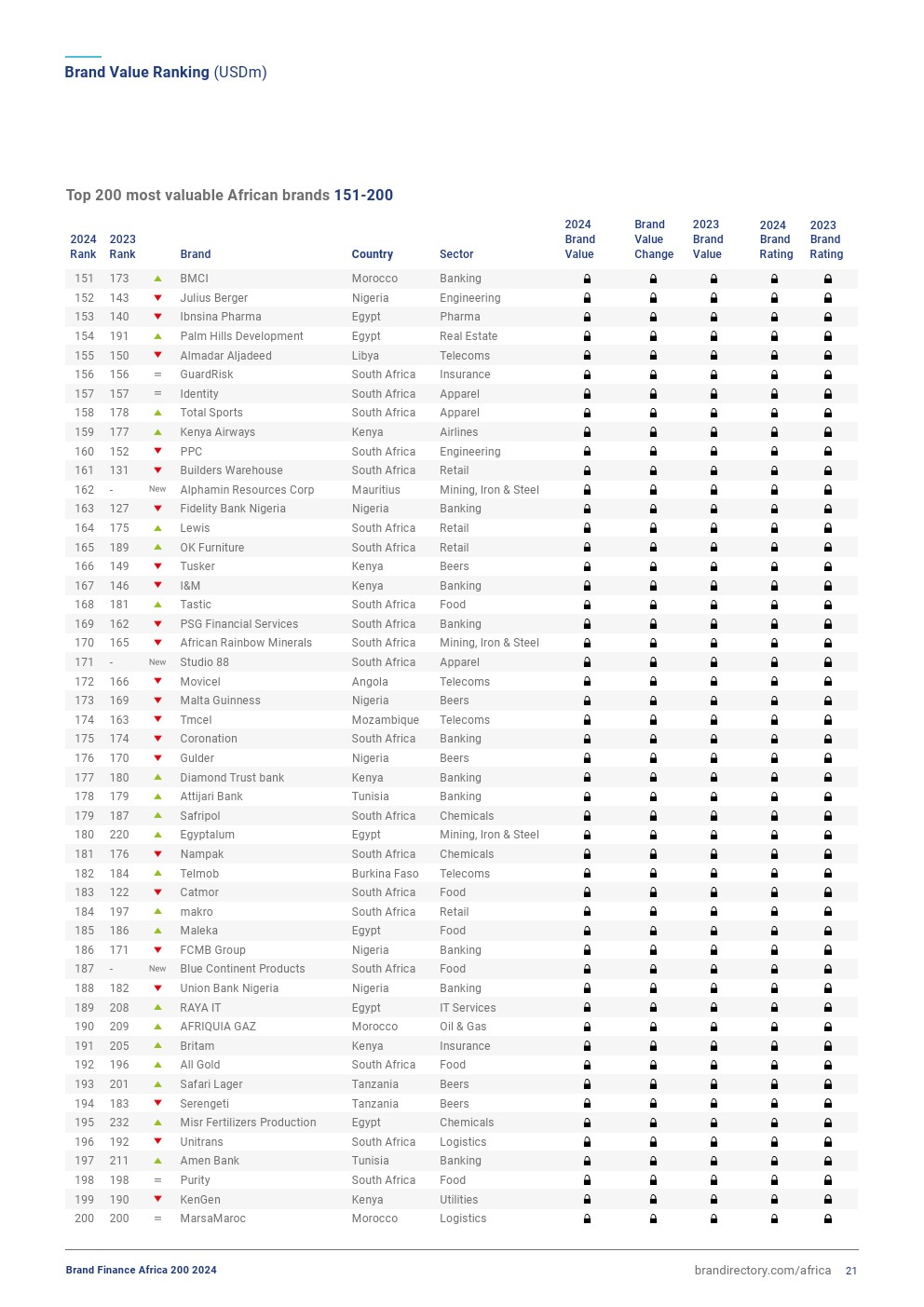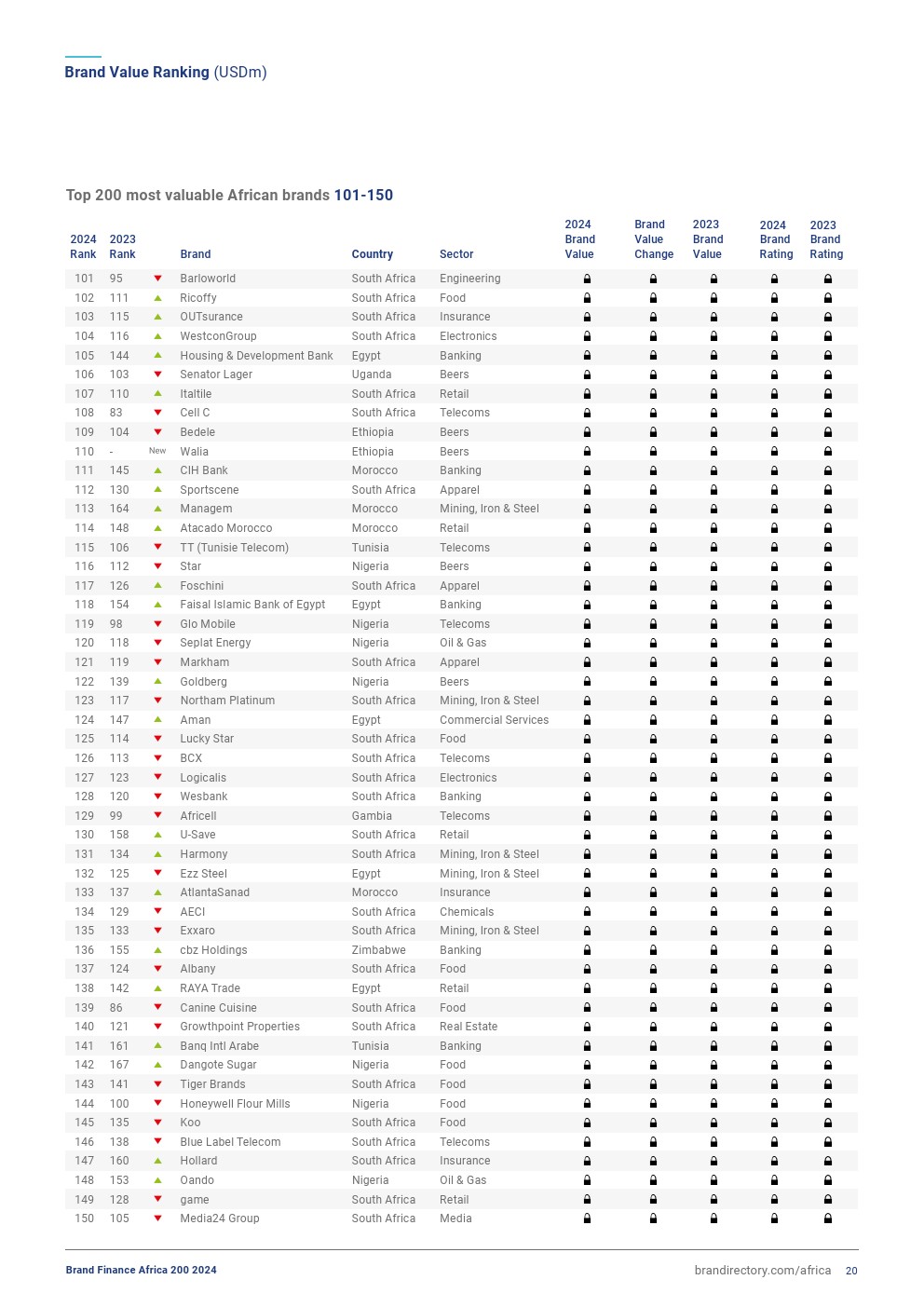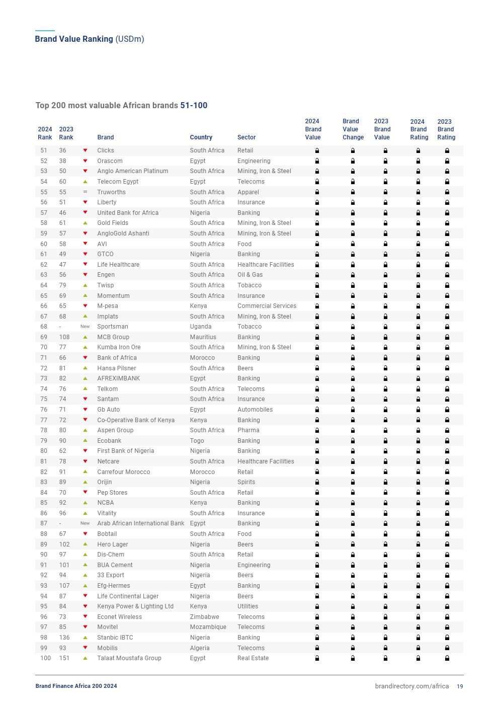Nando’s以15亿美元的价值进入了排名,成为非洲第四大最有价值品牌。Nando’s以其非洲传统和烹饪创新而闻名,已在全球扩张,英国和澳大利亚的收入贡献巨大。