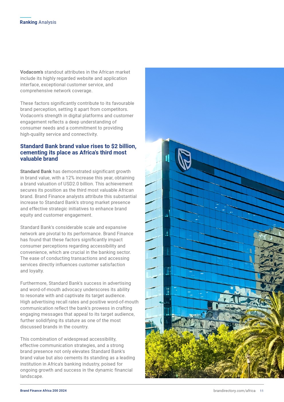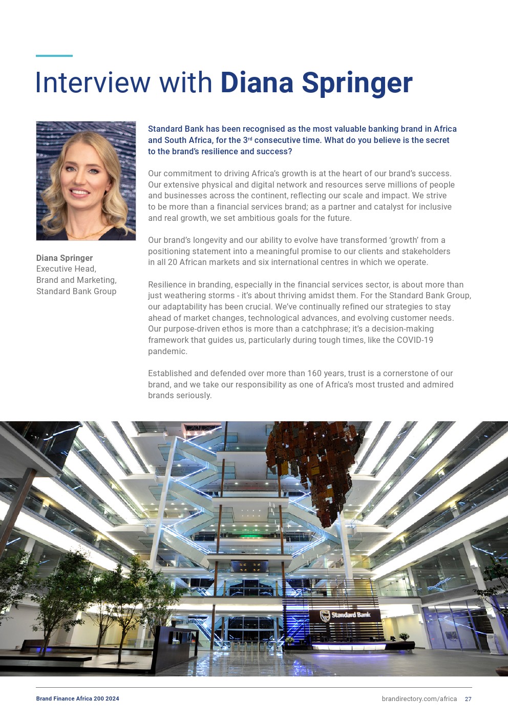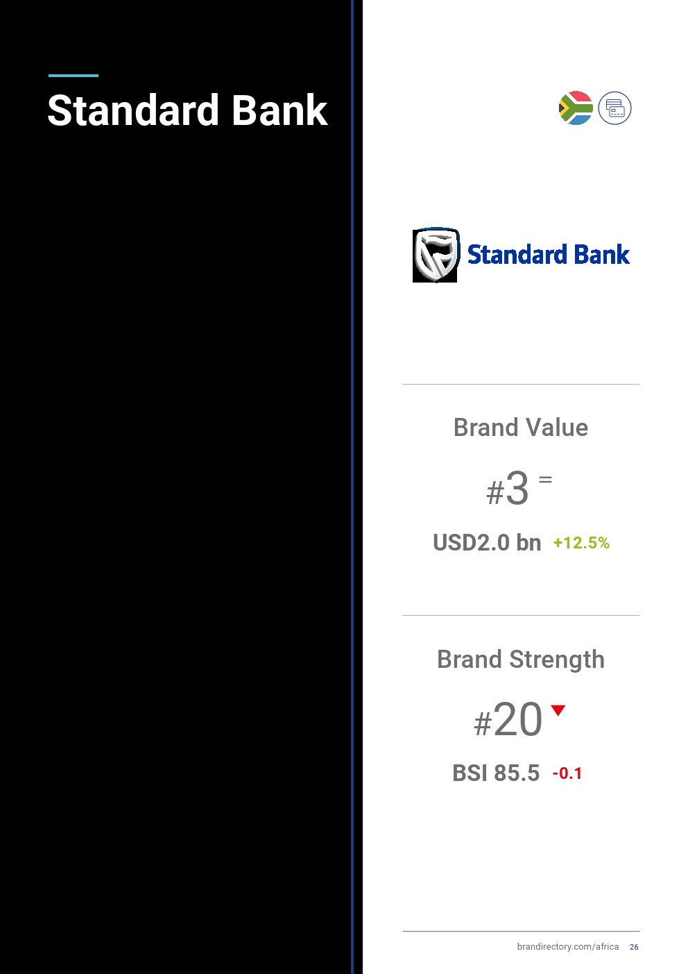 标准银行品牌价值增长12%,达到20亿美元,稳居非洲第三大最有价值品牌。