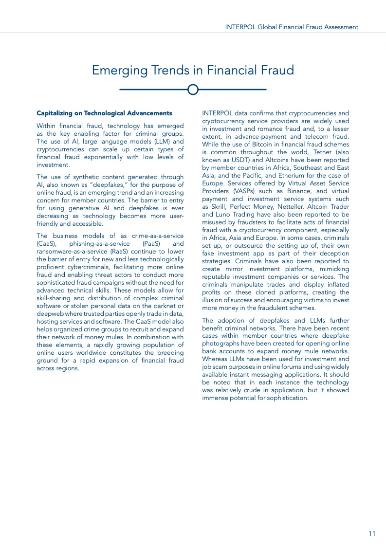 技术的利用: 欺诈者越来越依赖信息和通信技术,特别是人工智能如深度伪造(deepfakes)技术,以欺骗受害者并隐藏身份。