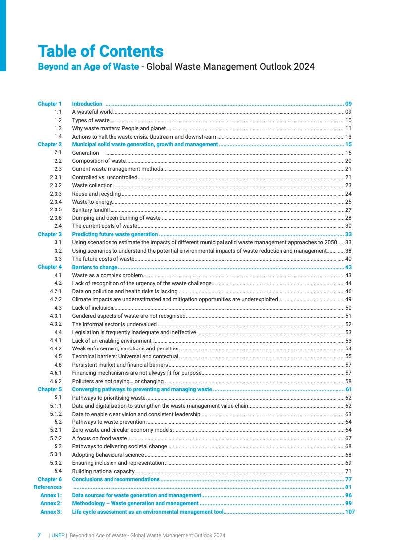 联合国环境规划署(UNEP)和国际固体废物协会(ISWA)共同发布的《2024年全球废物管理展望》强调了循环经济模式在尽可能减少废物方面的关键作用。报告提出了三种方案: