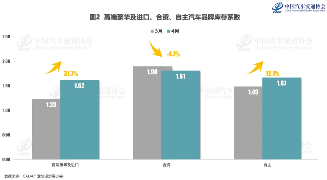 二、高端豪华及进口、自主库存系数上升,合资库存系数下降