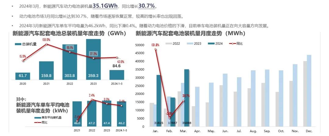 - 2024年3月新能源汽车总装机量达到35.1GWh。