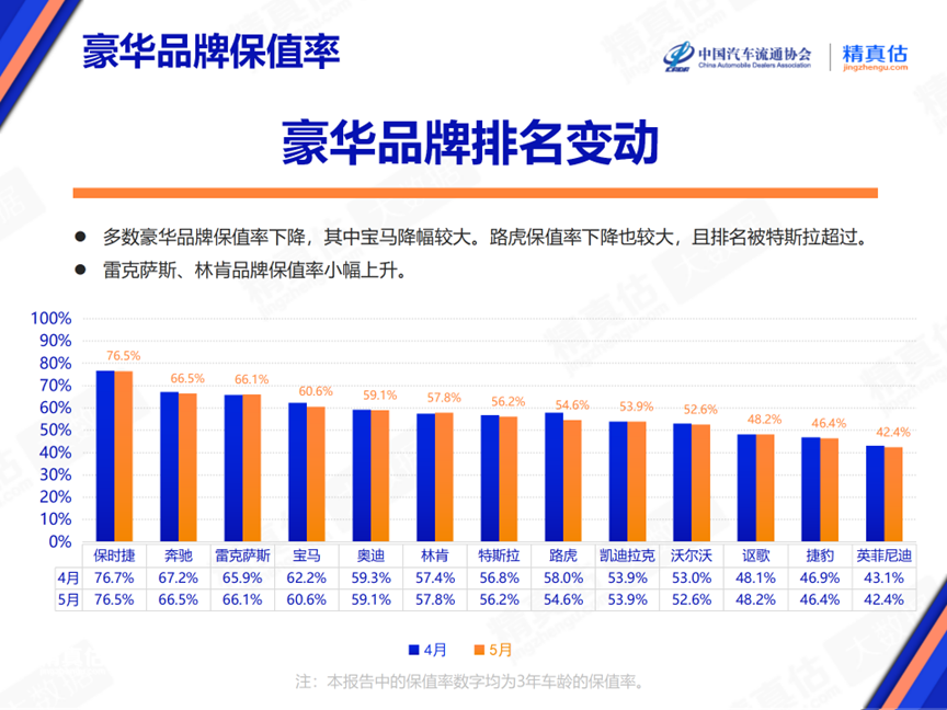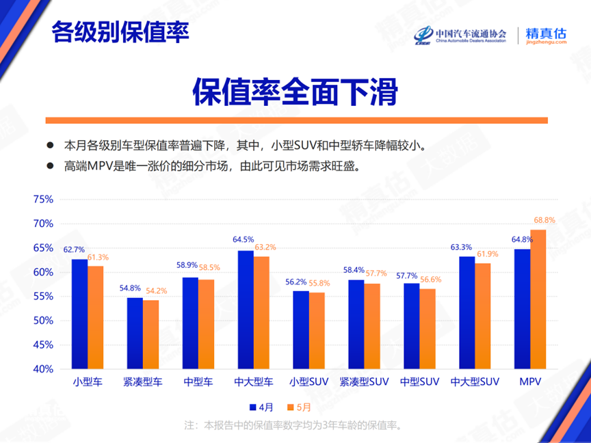 2024年6月3日,中国汽车流通协会和精真估联合发布了《2024年5月中国汽车保值率研究报告》。通过保值率研究旨在反映品牌的产品力、认知度、美誉度等综合实力,对未来开展回购、置换、租赁、金融、新车定价参考等相关业务提供重要数据参考,从而降低业务风险,提升经营效率。