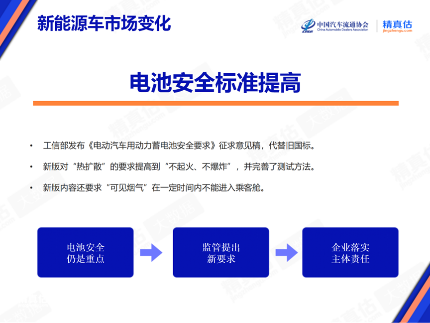 根据新的《安全要求》,即便电池单体出现热失控,也能做到不起火不爆炸,最大限度的保护车内人员、财产和道路基础设施。五月底,工信部、市监总局、国家消防救援局三部门召开视频会议,分析了新能源汽车安全形势,并要求企业落实安全主体责任。同期,工信部还有《乘用车制动系统技术要求及试验方法》等强制性国标正在公开征求意见。