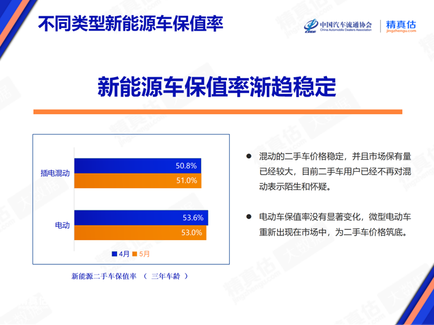 保值率稳定的根本原因还是车辆性能稳定、品质稳定。虽然新车持续换代,但对于二手车目标用户来说,二手车的品质和性能已经满足了基本需求,这是汽车产业整体升级、进步的结果。本月开始的新能源汽车下乡活动为产品打开了销路,供需恢复平衡,价格得以稳固。