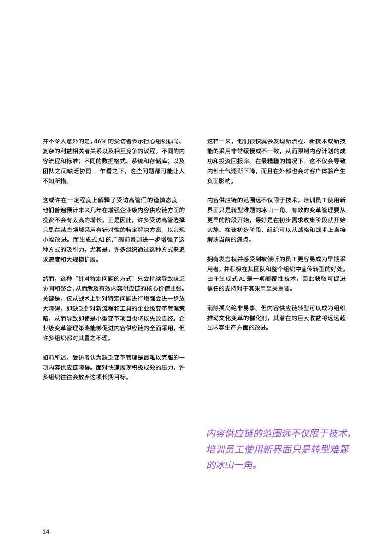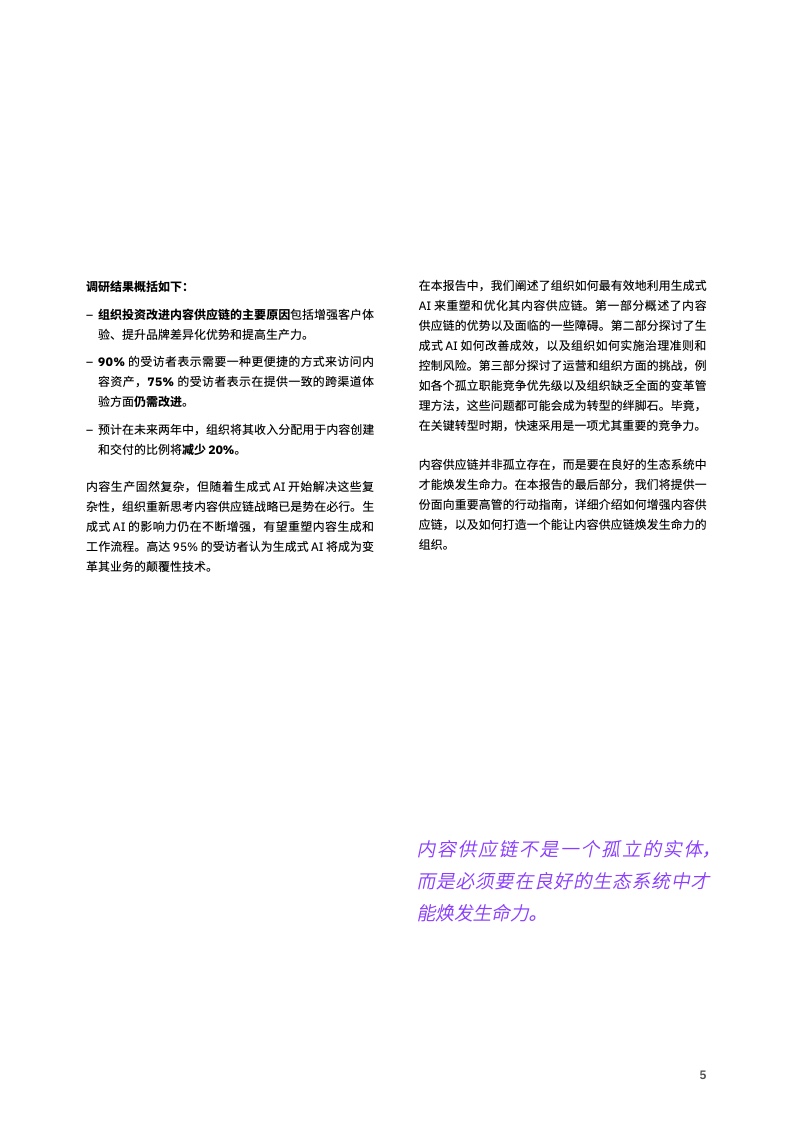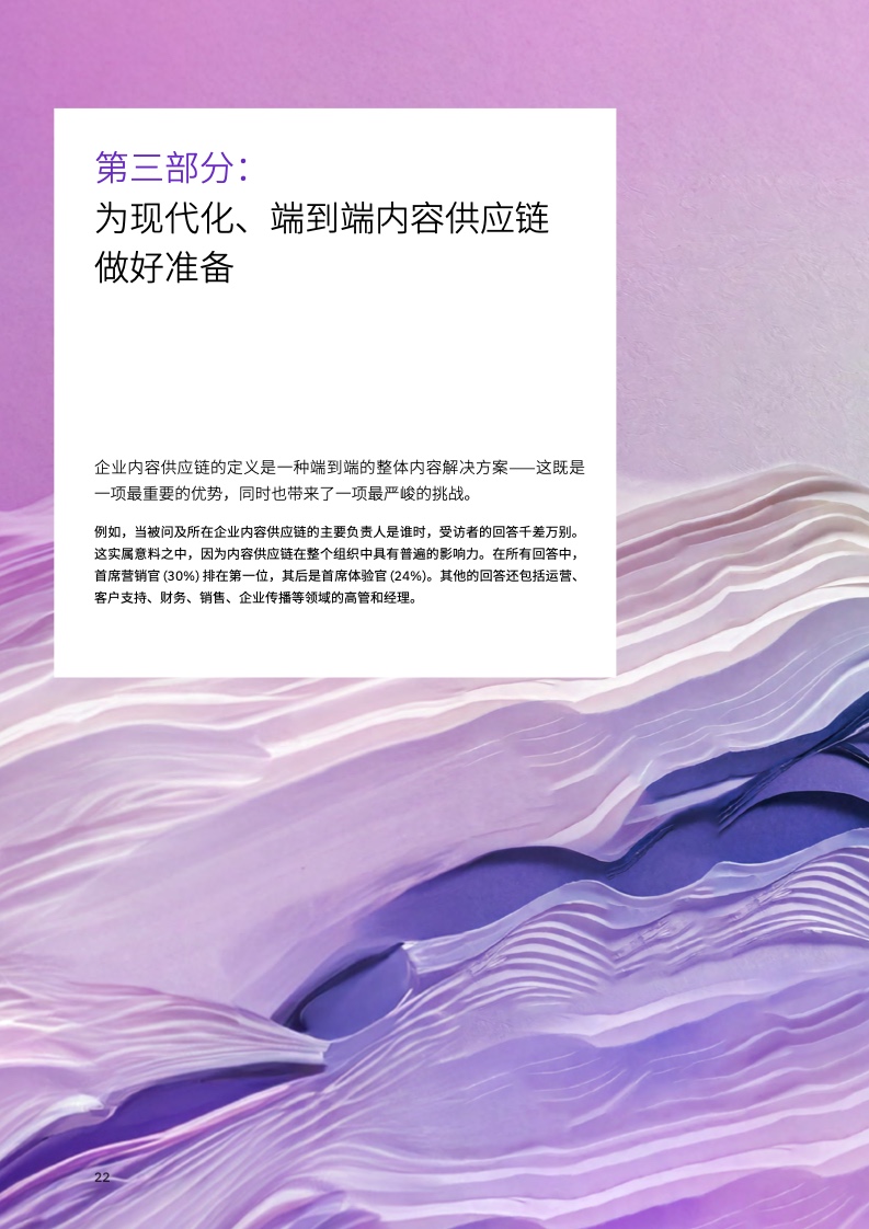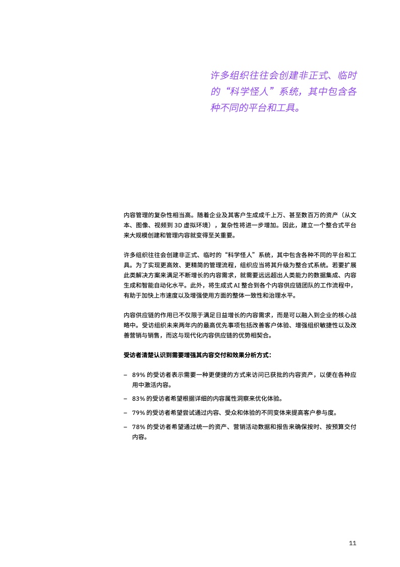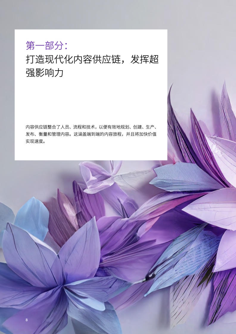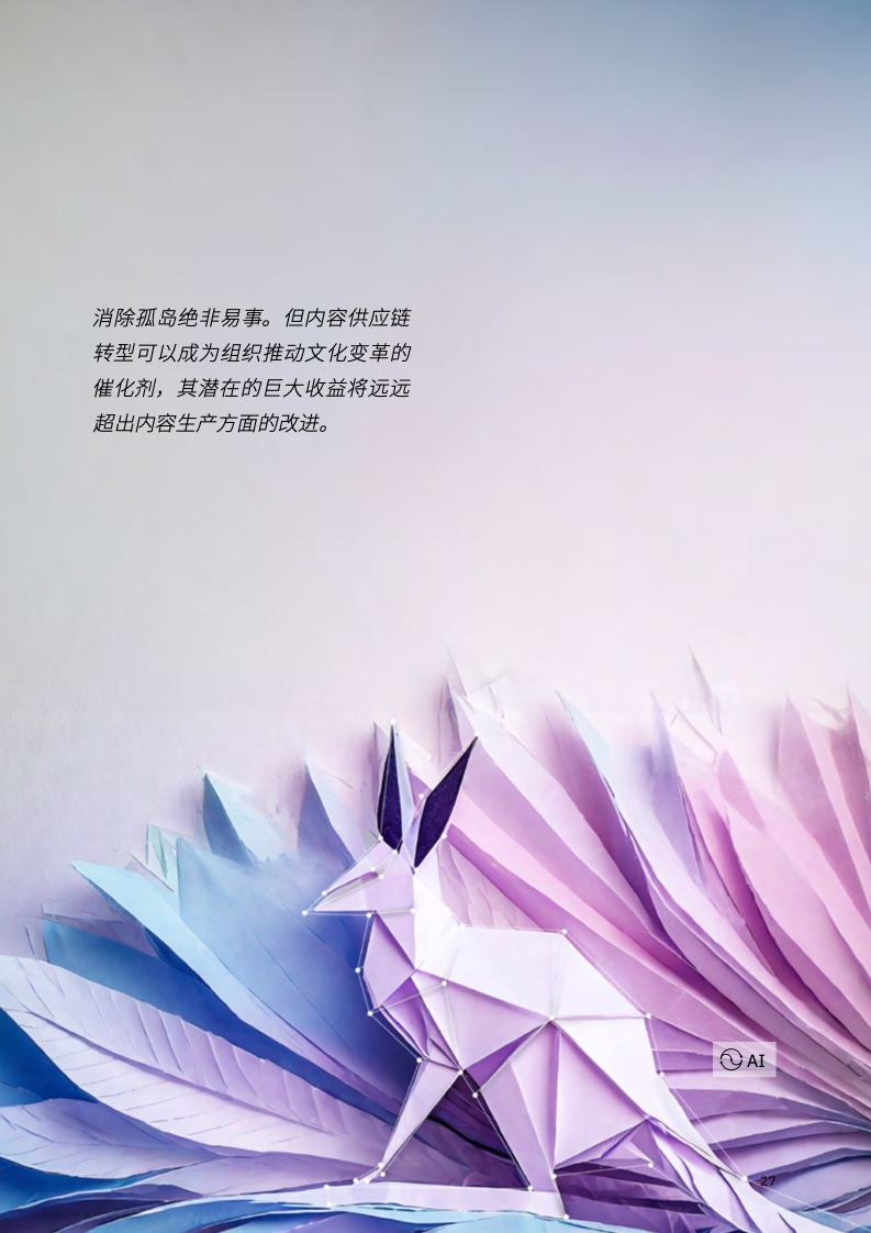 随着内容生产的范围和规模急剧增长,尤其是生成式 AI 催生了新的机遇,组织需要重新设计其内容创建、交付和跟踪机制,就像以往推动财务和人力资源等其他部门转型一样。