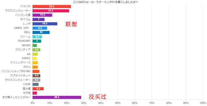 2024年玩家游戏电脑调查 联想位列品牌认可度第三 对于玩家来说,一台好的游戏性能电脑将极大的提升游玩愉快度,日前日媒对200名玩家进行了关于“你更加重视什么而选择了游戏电脑”的相关调查问卷,其中一项联想位列品牌认可度第三。 ·曾经选择购买了的品牌游戏电脑: ·购买游戏电脑时最看重的点: ·购买游戏电脑时的预算: ·购买游戏电脑时的机型: ·购买游戏电脑时的最低内存容量: ·正在玩的游戏: 自 3DMGame 更多阅读:Newzoo:超过十亿的女性是活跃的游戏玩家纽约大学:调查显示51%的游戏用户在游戏中遭遇过极端主义NikoPartners:64%中国游戏玩家每个月都会花钱玩游戏Valve:2025年Windows 10仍占Steam玩家37%份额Steam:2025年6月Windows 11使用率达59.84%创新高不再“人傻钱多”,日本游戏玩家氪金数据调查报告IDC:2024年全球PC出货量达2.53亿台 联想6180万台居首洛图科技:2024年Q3中国大陆线上笔记本电脑市场销量为298万台 同比下降10%Gartner:2024年Q4全球PC出货量达6440万台 同比增1.4%TechInsights:2024年Q2全球笔记本电脑市场出货量达到4970万台 同比增长4%Counterpoint:预计2024年Q3全球电脑市场出货量同比增长1% 达6530万台Canalys:2022年Q3美国PC出货量同比下降12.1%TechInsights:2024年Q1联想笔记本出货1080万台全球第一 占全球近1/4份额IDC:2025年Q1全球PC出货量达6320万台 同比增长4.9%Canalys:2025年Q1美国PC出货量1690万台,同比增长15%