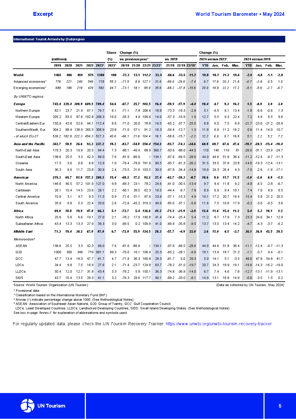 联合国旅游组织对2024年的预测表明,国际旅游业将全面复苏,游客人数将比2019年增长2%。联合国旅游组织发布的最新数据显示: