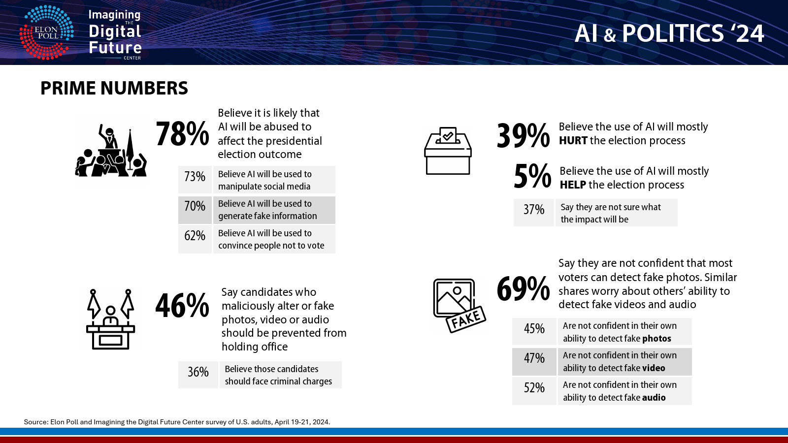 70%的人表示,选举可能会受到使用人工智能生成虚假信息、视频和音频材料的影响。