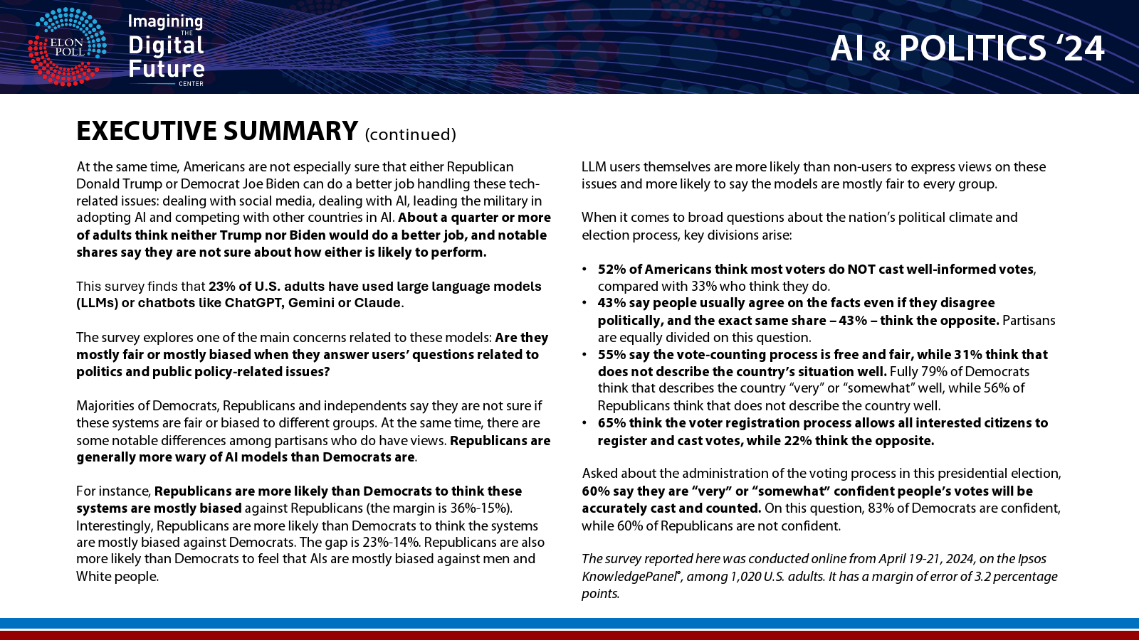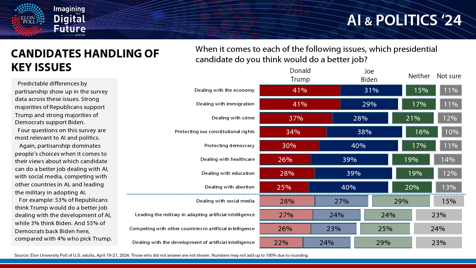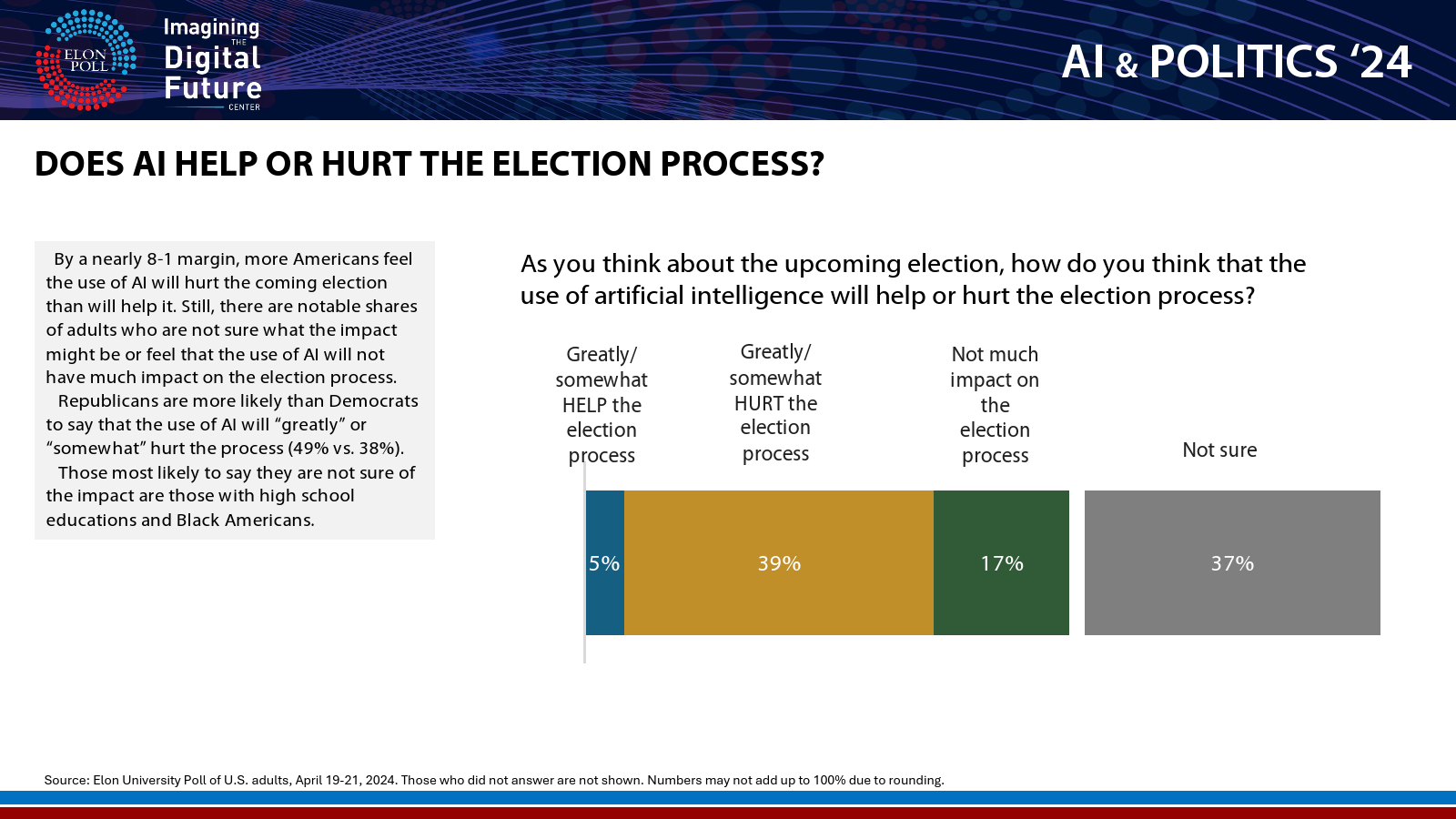 绝大多数美国成年人预计,人工智能系统的滥用可能会影响2024年总统大选的结果,至少在某种程度上是这样。