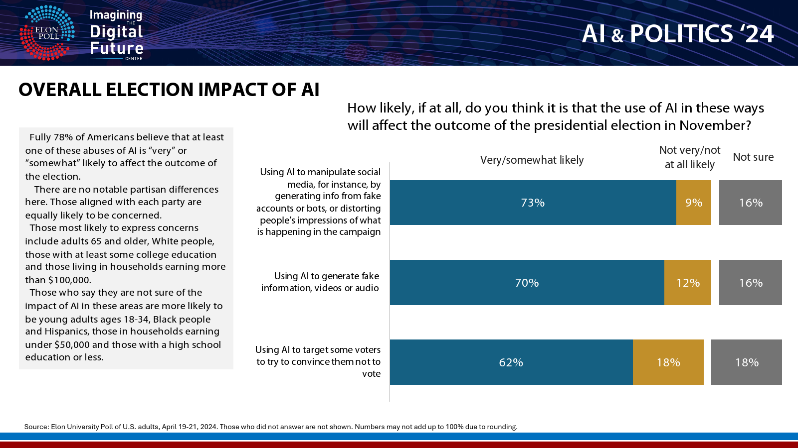 总的来说,78%的人表示,人工智能的这些滥用行为中至少有一种会影响选举结果。