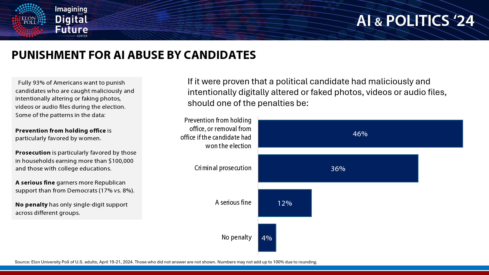 这些担忧让美国人心情沉重。93%的人认为,对于恶意、故意篡改或伪造照片、视频或音频文件的人,应该给予一定的处罚。