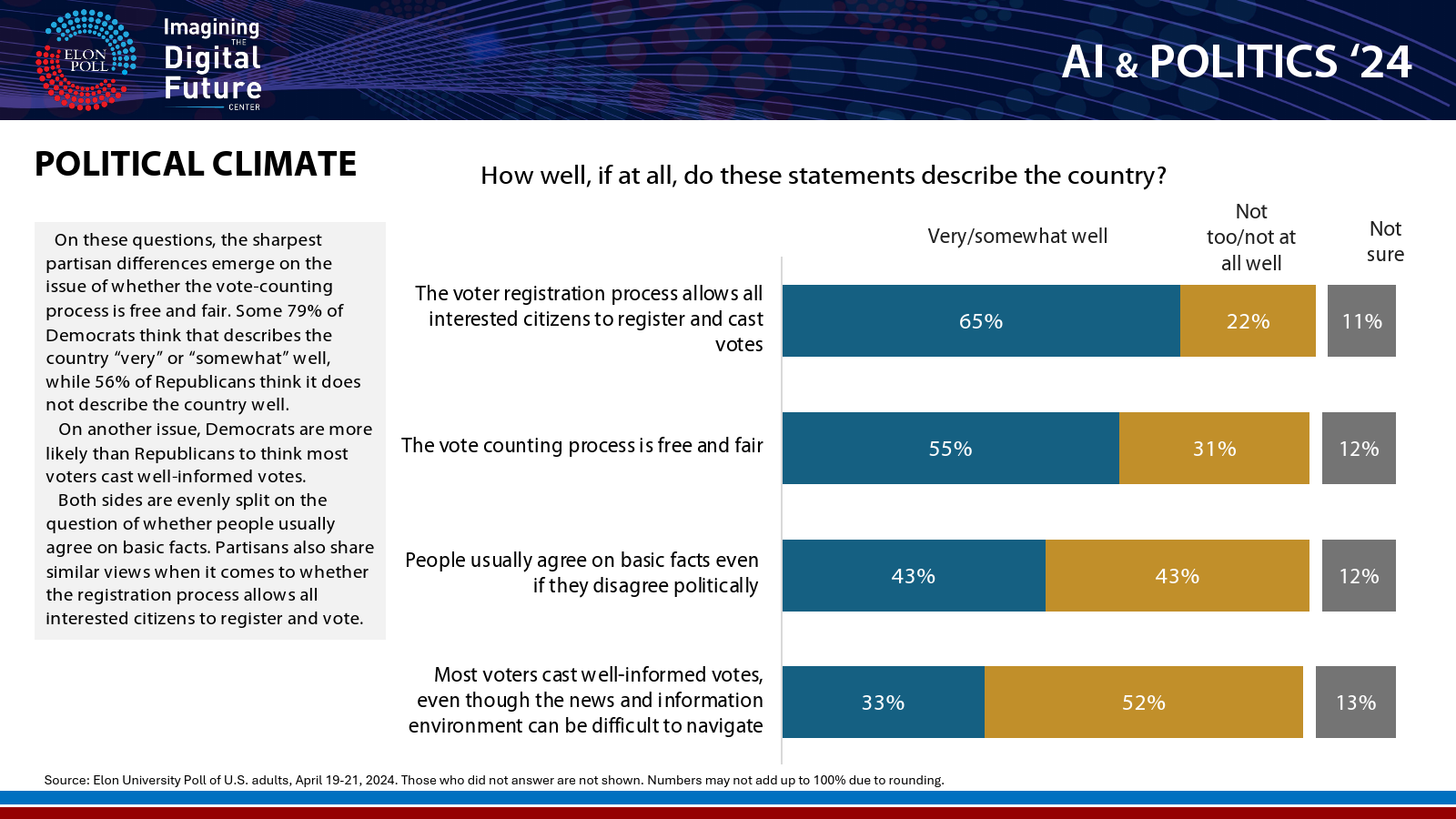 52%的美国人认为大多数选民没有在知情的情况下投票,相比之下,33%的人这样认为。