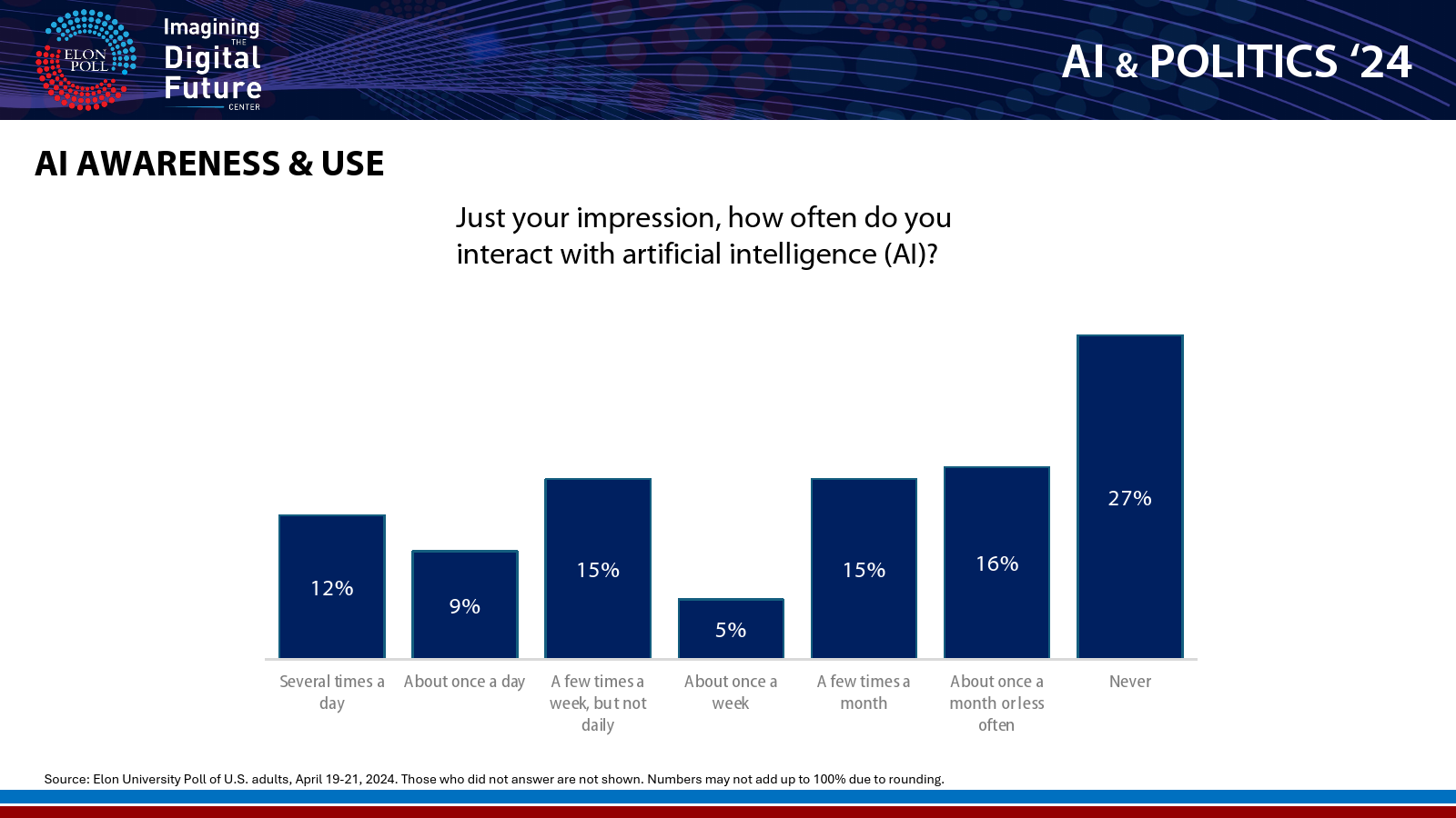 73%的美国人认为,人工智能“非常”或“有些”可能被用来操纵社交媒体,以影响总统选举的结果。