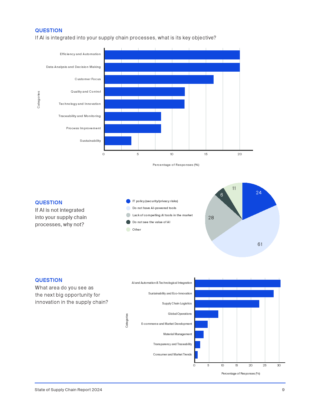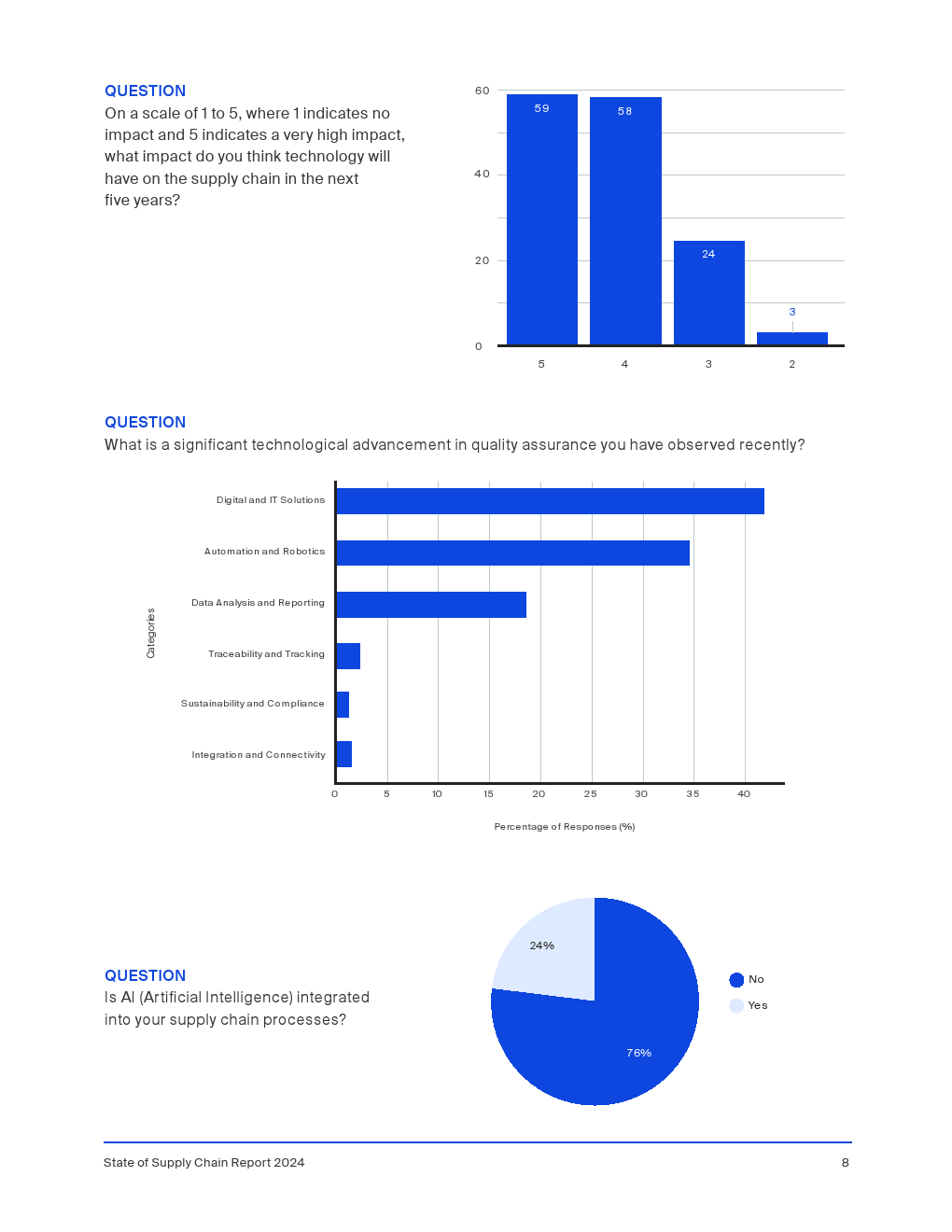 人工智能正在推动供应链效率的提高:82%的受访者表示,技术进步将在未来五年内对供应链产生重大影响。