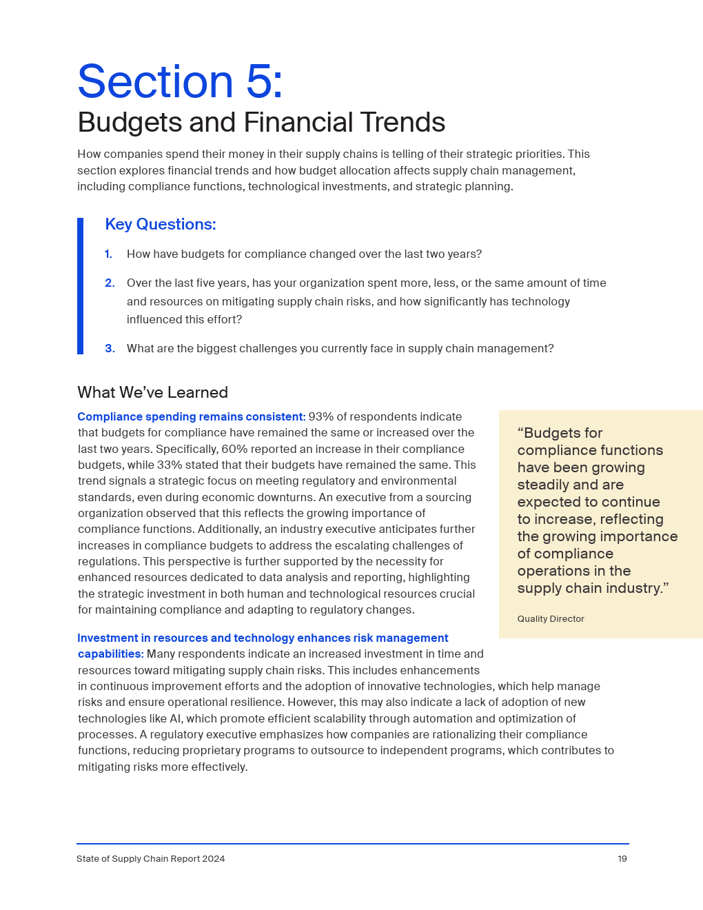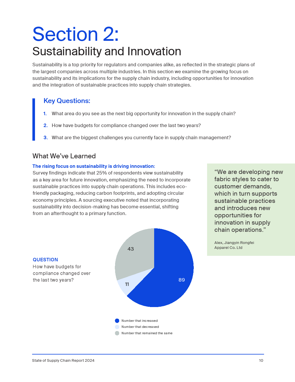 消费者期望和法规变化继续推动供应链行动,导致供应链团队预算的维护或提高,以满足这些新的和不断增长的需求。