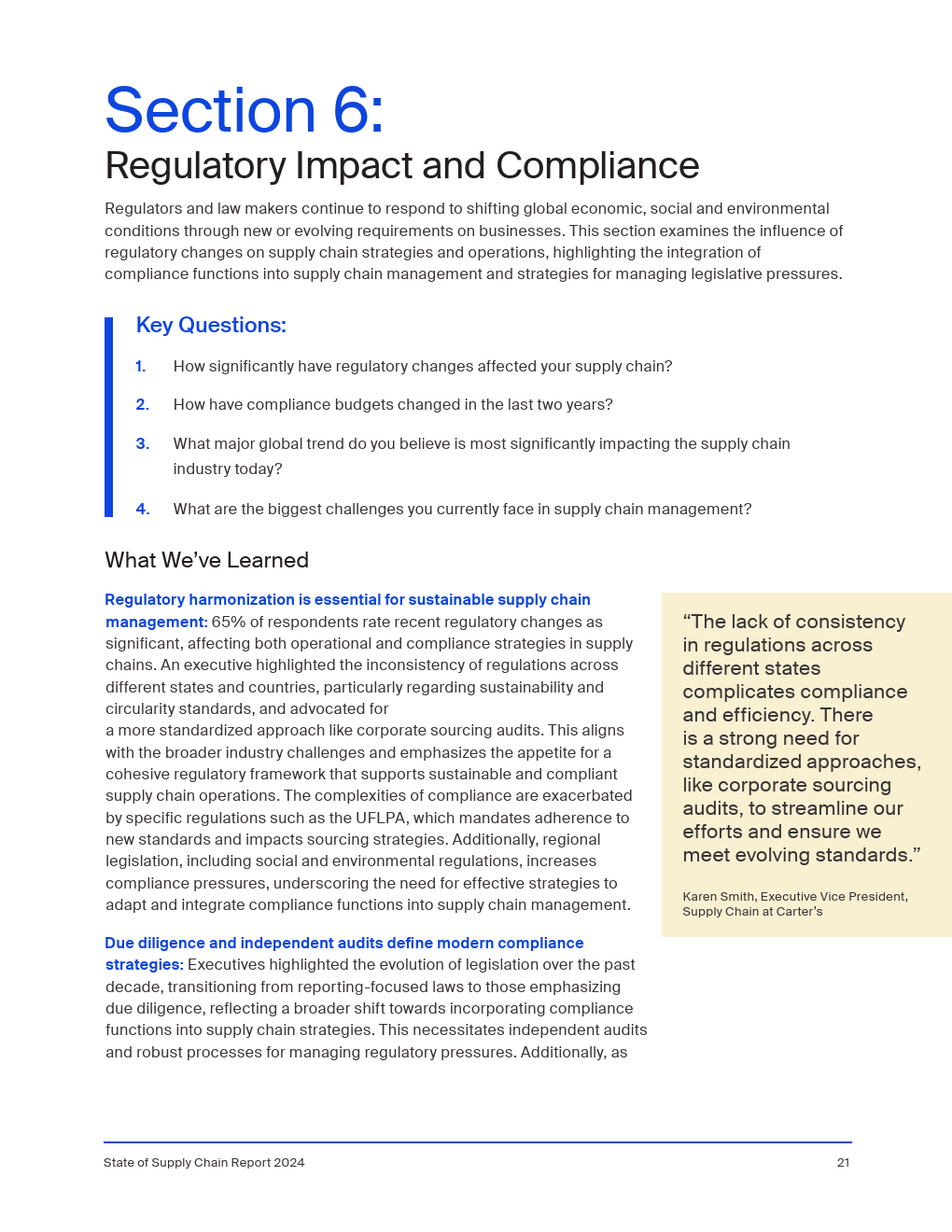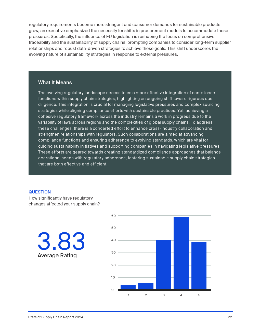 企业根据法规变化调整供应链和合规战略:65%的受访者认为最近的法规变化非常重要,对运营和合规战略都产生了影响。