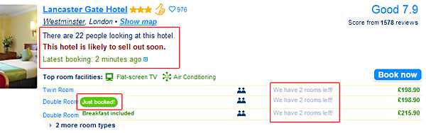 Hotels.com采用了类似的策略,在客户的预订过程中会有不同的“弹出式“紧迫感信息出现。