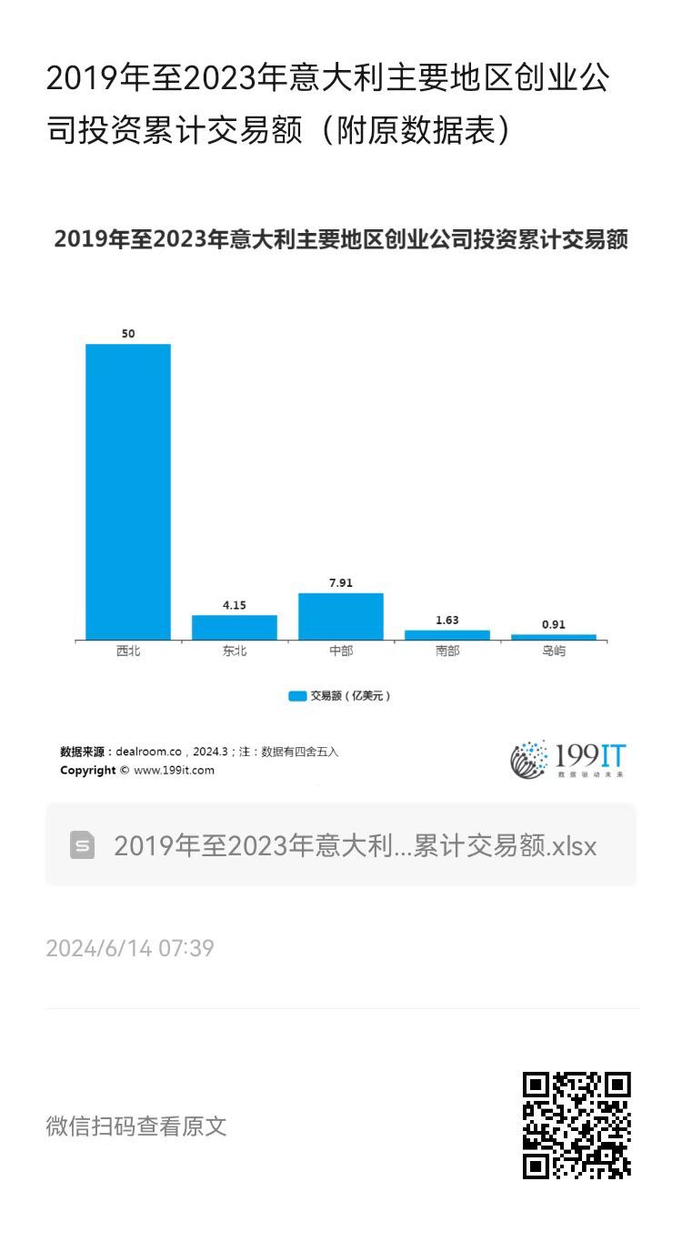 2019年至2023年意大利主要地区创业公司投资累计交易额(附原数据表) ​​​