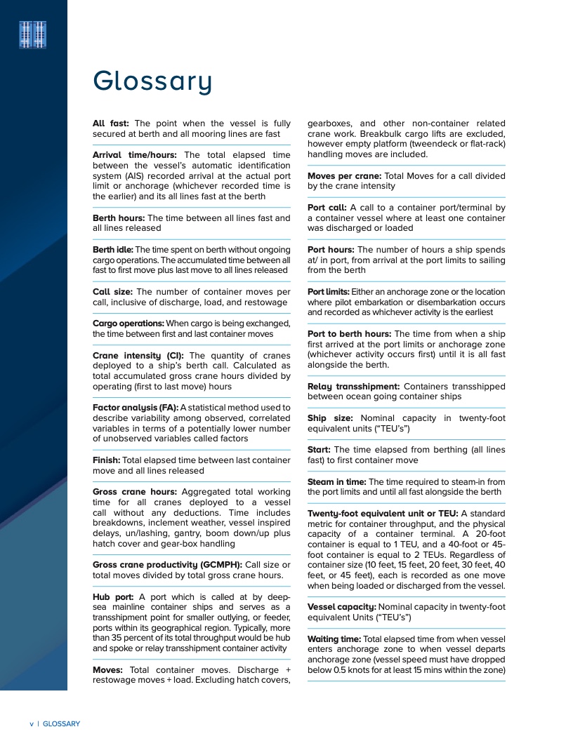 本期报告基于全球405个集装箱港口的效率进行排名,重点关注集装箱船在港口停留的时间。报告主要旨在确定有待改进的领域,以促进港口、航运公司、各国政府、消费者等全球贸易体系和供应链中众多利益相关方的共同发展。