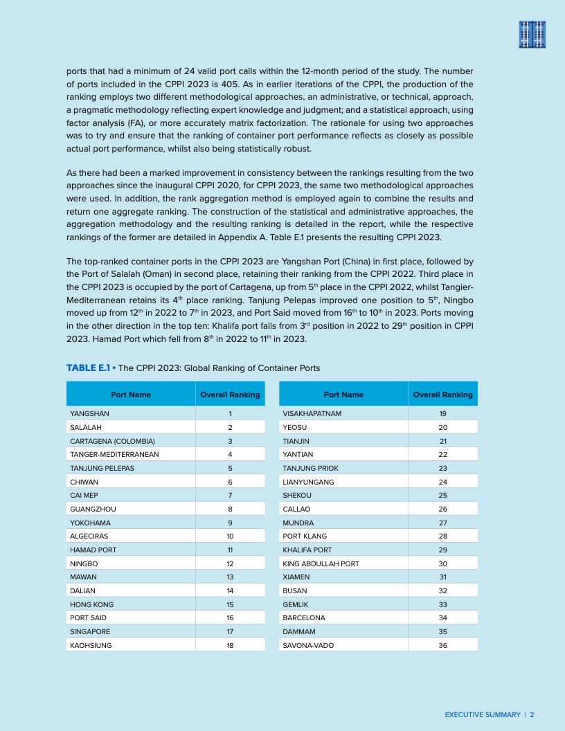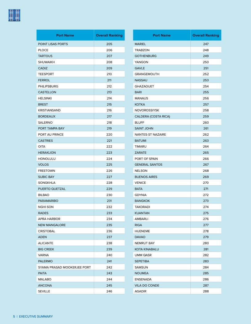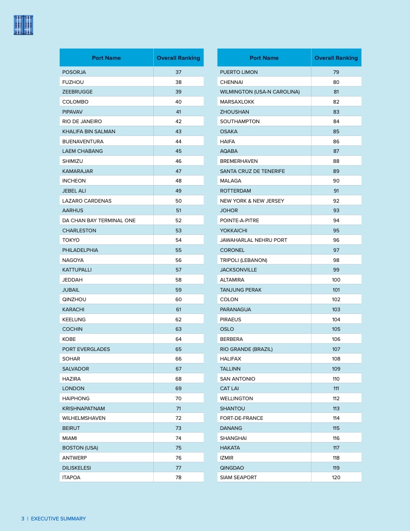 在表现最出色的港口中,中国洋山港连续第二年蝉联榜首,阿曼的塞拉莱港保持第二位,哥伦比亚卡塔赫纳港升至第三位。摩洛哥的丹吉尔地中海港稳居第四,马来西亚的丹绒帕拉帕斯港跻身前五。