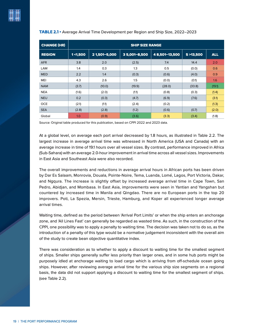 本期报告新增了57个港口,包括爱沙尼亚的穆加港、阿曼的杜库姆港,以及其他几个重要港口。印度的主要港口维沙卡帕特南港跻身前20名。坦桑尼亚的达累斯萨拉姆港尽管排名相对靠后,但是设法将船舶进港时间缩短了57%。