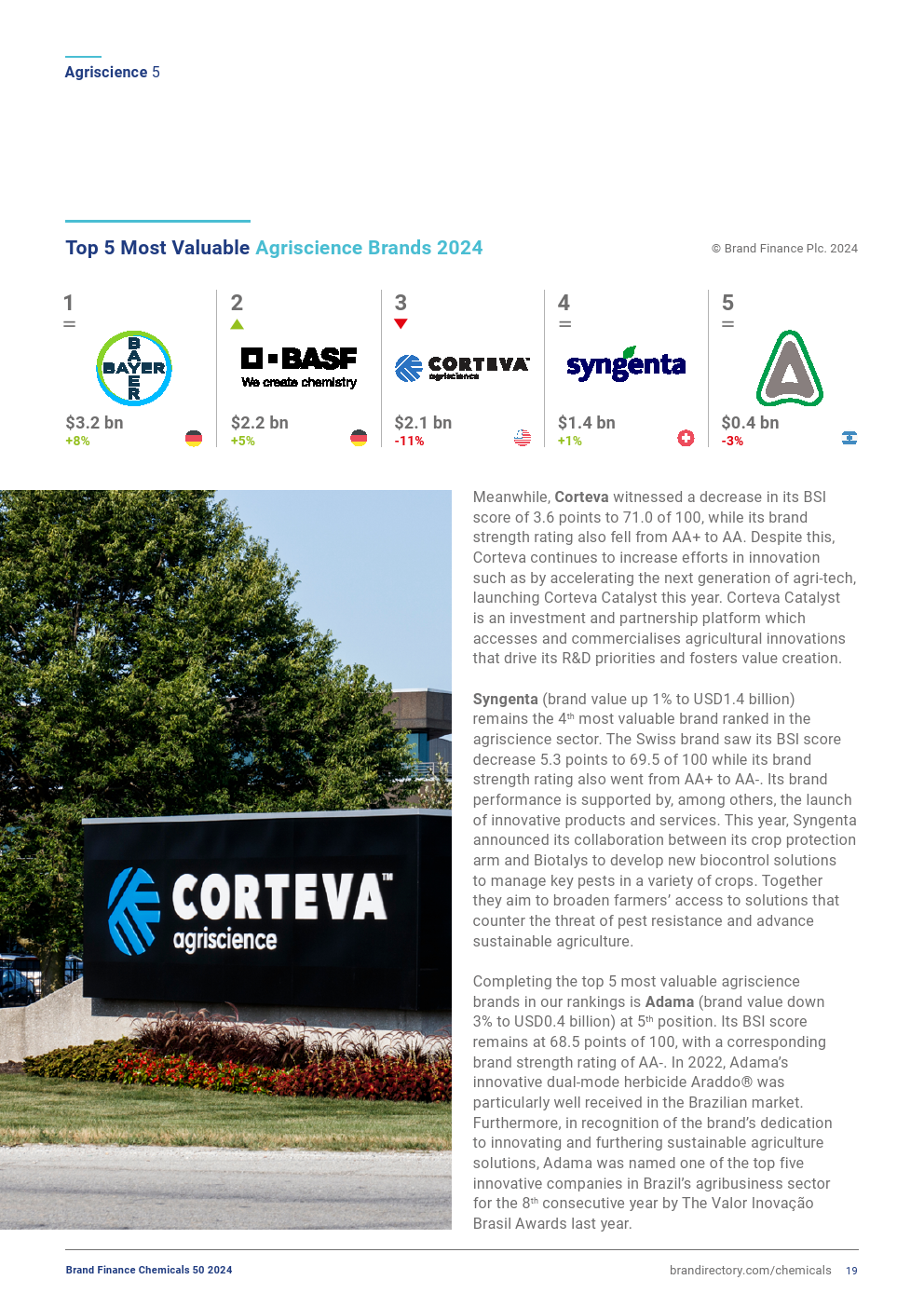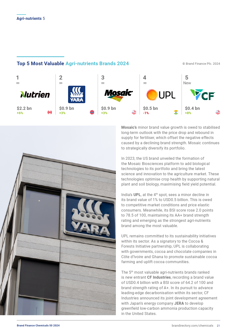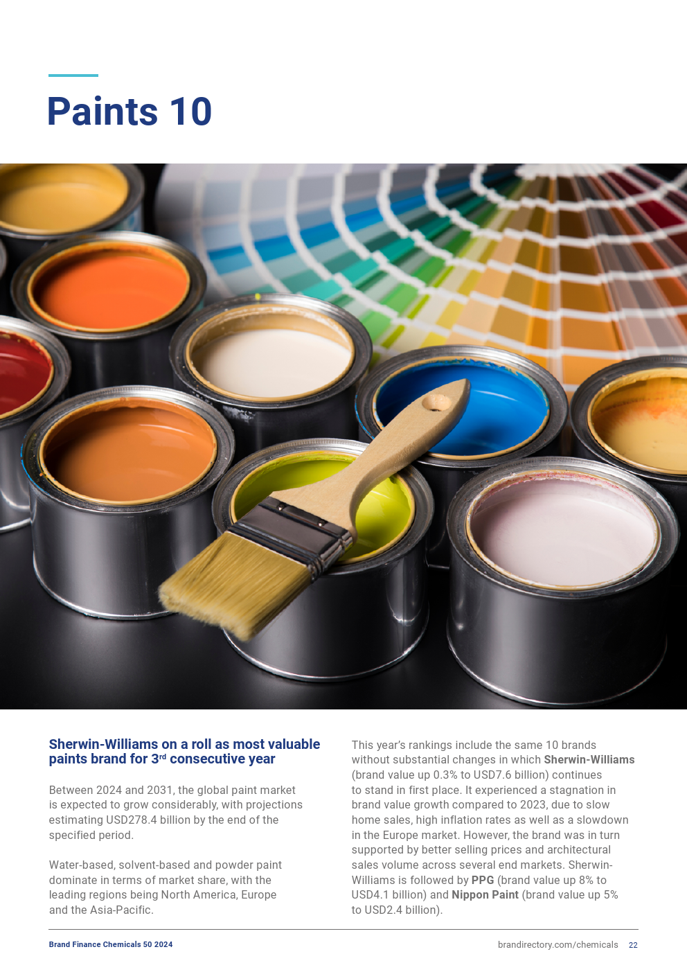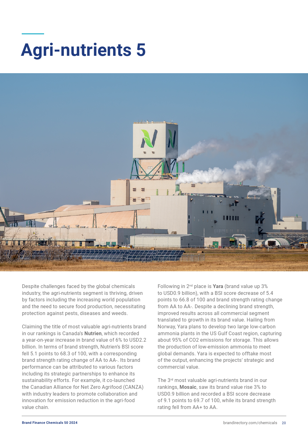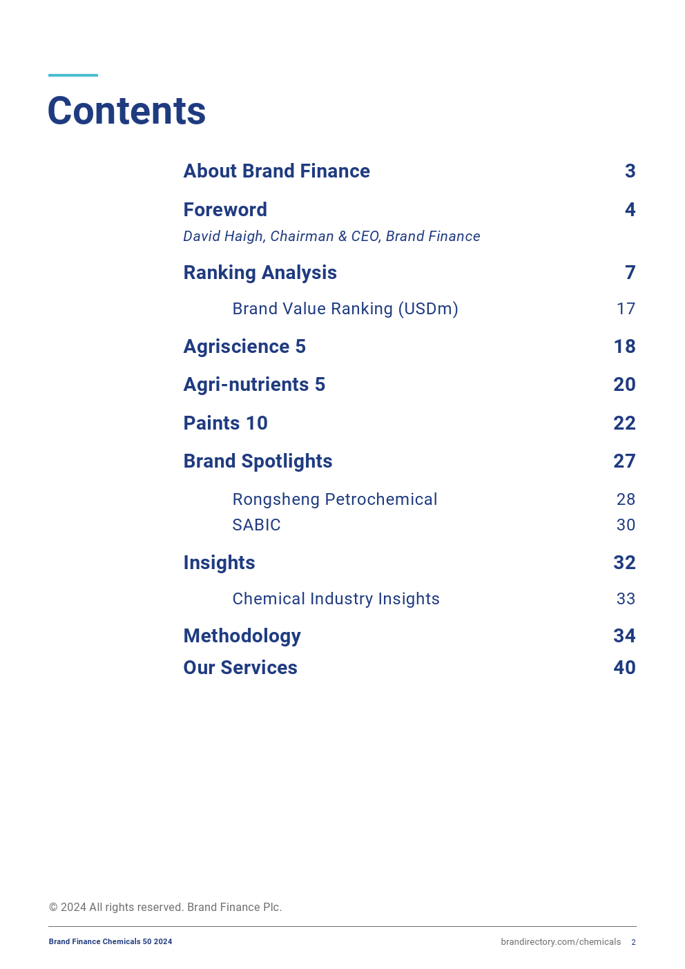 Brand Finance发布了“2024年化学品牌50强”,巴斯夫连续10年蝉联最具价值化学品牌。
