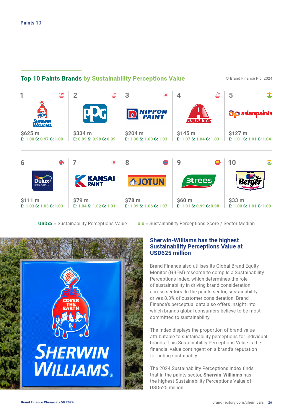 作为分析的一部分,Brand Finance评估了特定品牌属性在推动整体品牌价值方面所起的作用。其中一个日益重要的属性就是可持续性。Brand Finance评估特定品牌的可持续性,用“可持续性感知得分”来表示。然后为每个品牌计算与可持续性感知相关的价值,即“可持续性感知价值”。