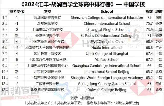 胡润百学董事长兼首席调研官胡润强调:“胡润百学在全球范围内寻找每个地区最好的高中,只考虑有实体学校的非公立学校,根据毕业生去向、课外活动和学校声誉对它们进行排名,没有考虑考试成绩。”