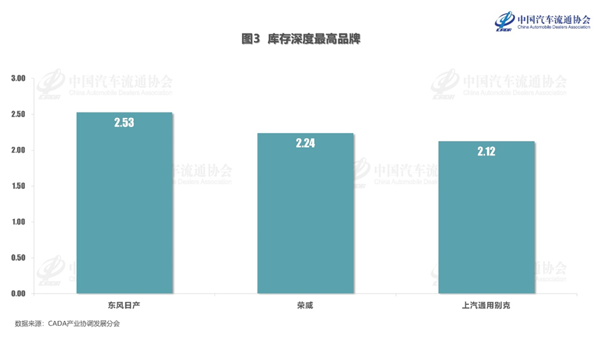 调查显示,5月份有6个品牌的库存系数超过2个月。其中库存深度最高的三个品牌为:东风日产、荣威、上汽通用别克。
