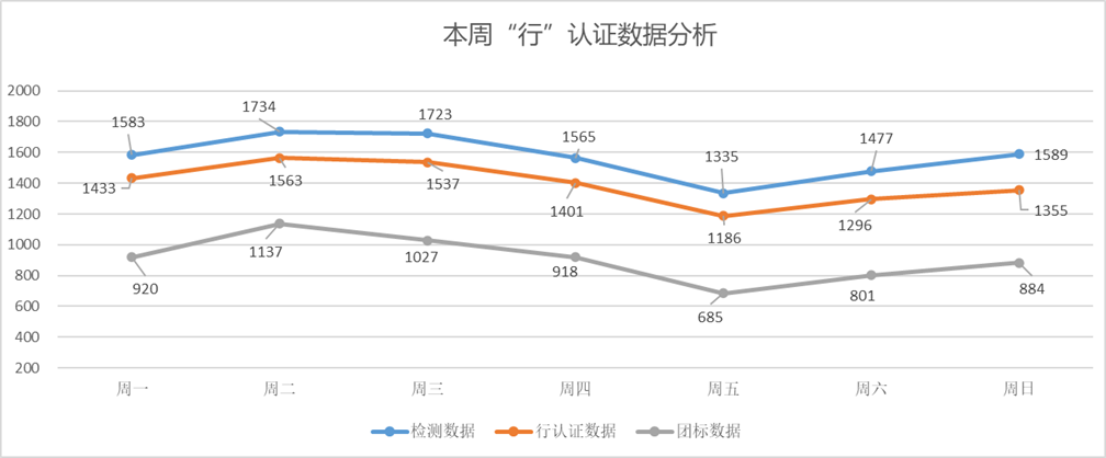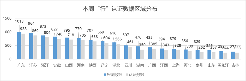 2024年6月第一周,上报 “行”认证统计数据中基于国家标准检测车辆为11006台,其中符合“行”认证数据为9771台(占比约88%),符合团标数据为6372台(占比约58%),本周上报数据较上周下降约4%,较2023年同期环比下降约7%,车况数据质量较上周表现良好。