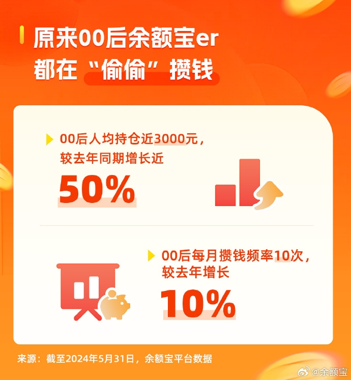 在余额宝平台,约有2000万00后进行定期存钱。据统计,00后用户的人均持仓额接近3000元,比去年同期增长了近50%。此外,00后用户每月的存款频次达到了10次,年增长率为10%。