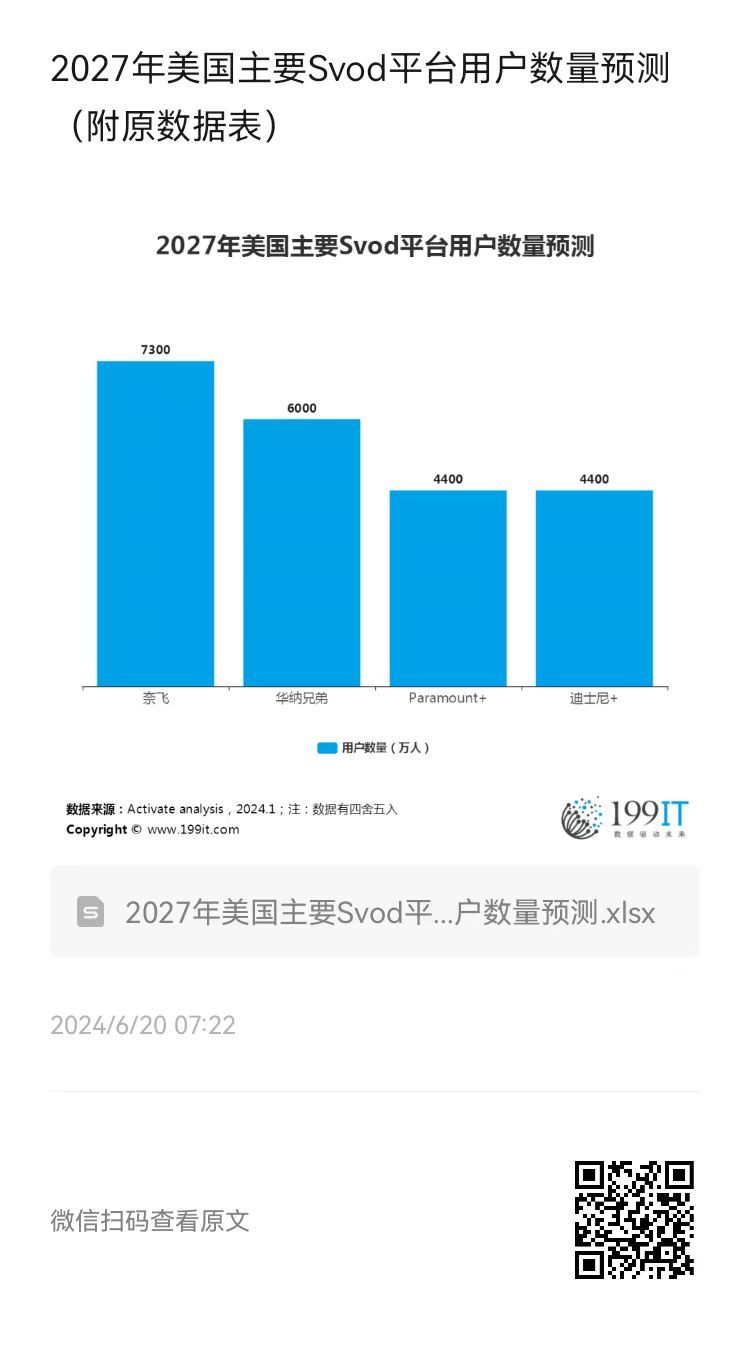 - 2027年全球主要Svod平台用户数量预测(附原数据表)